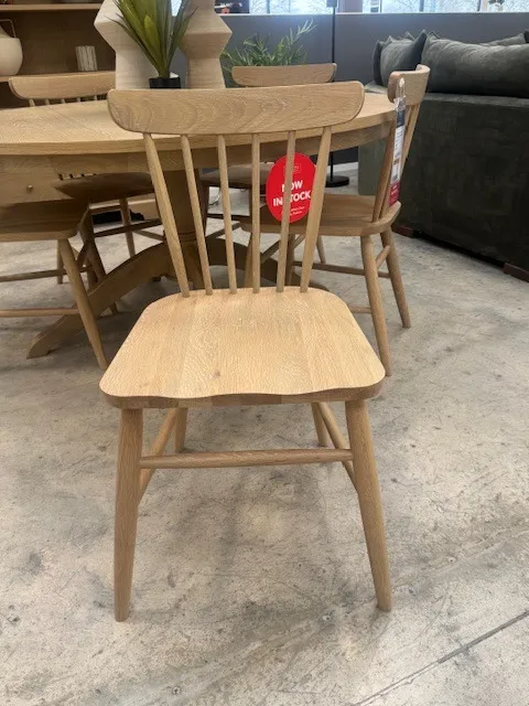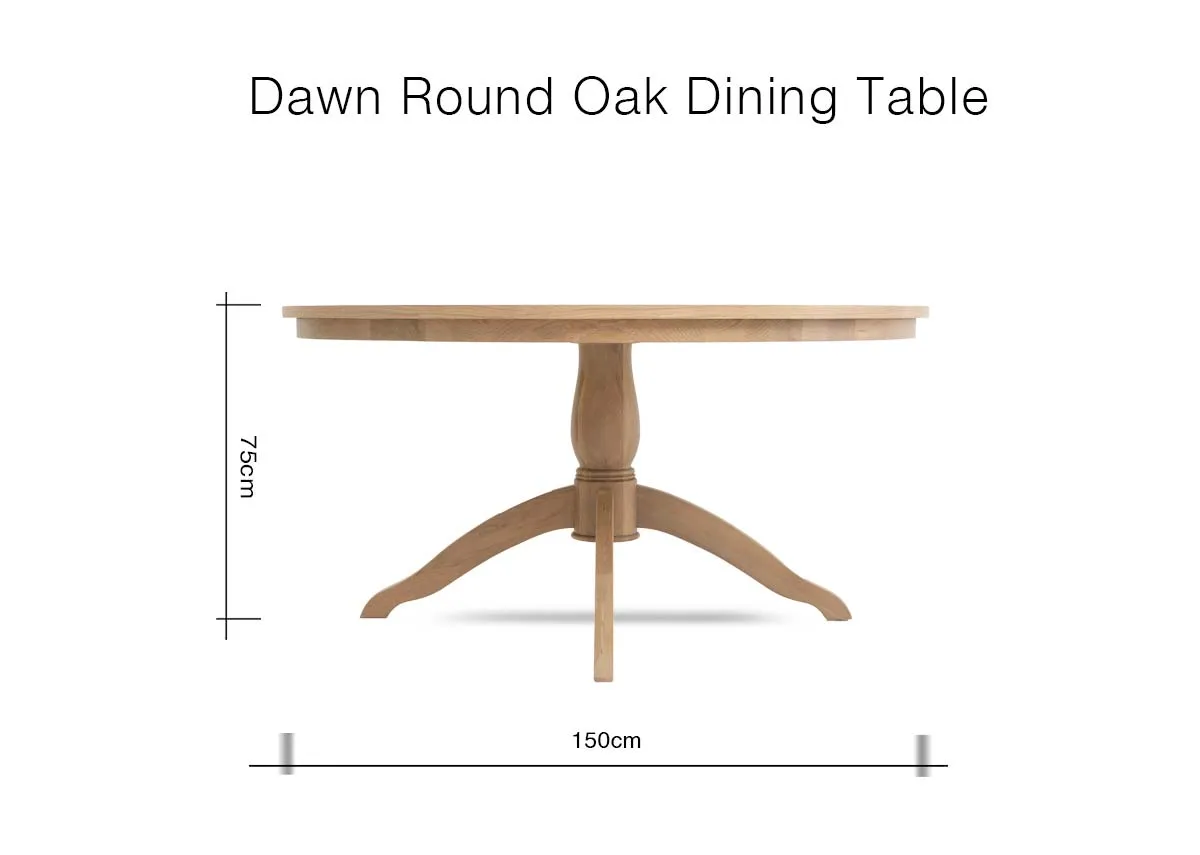 Dawn 150cm Oak Round Dining Table & 5 x Spindle Curved Oak Dining Chair (Tullamore Floor Model)