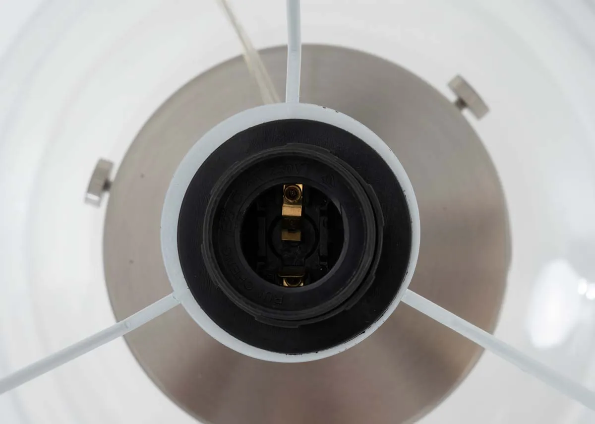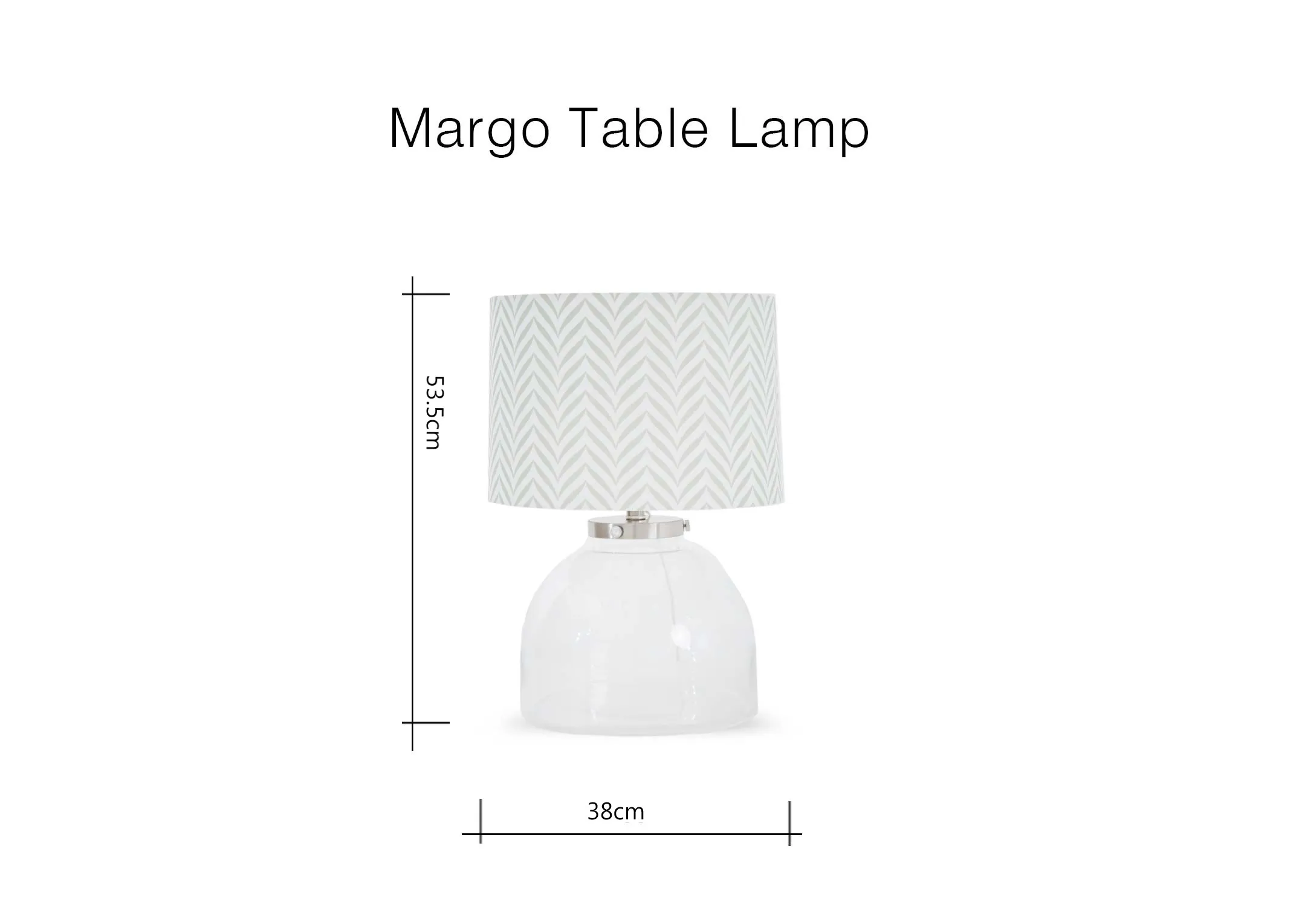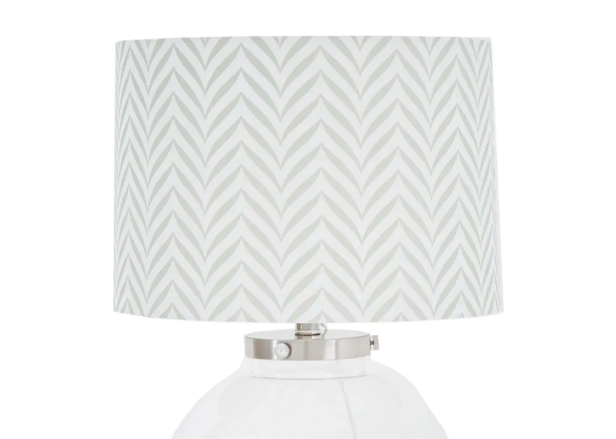Boasting a clear glass semi circle base & striking printed silver zig zag detail shade the Margo is a must.