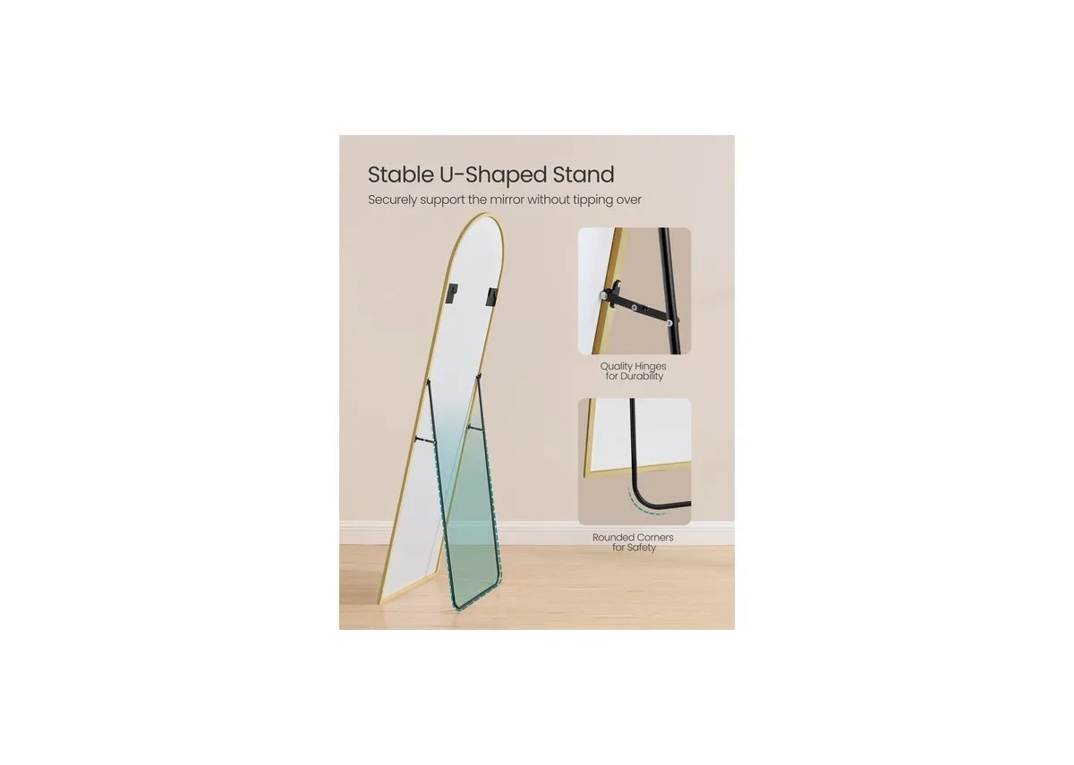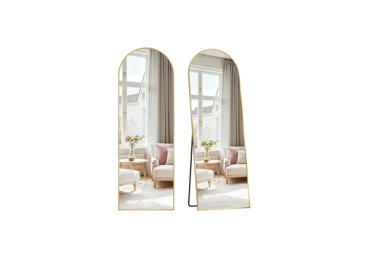 Elevate your space with the Reflecta Gold Free Standing Mirror, featuring an elegant arched top and a luxurious gold frame.