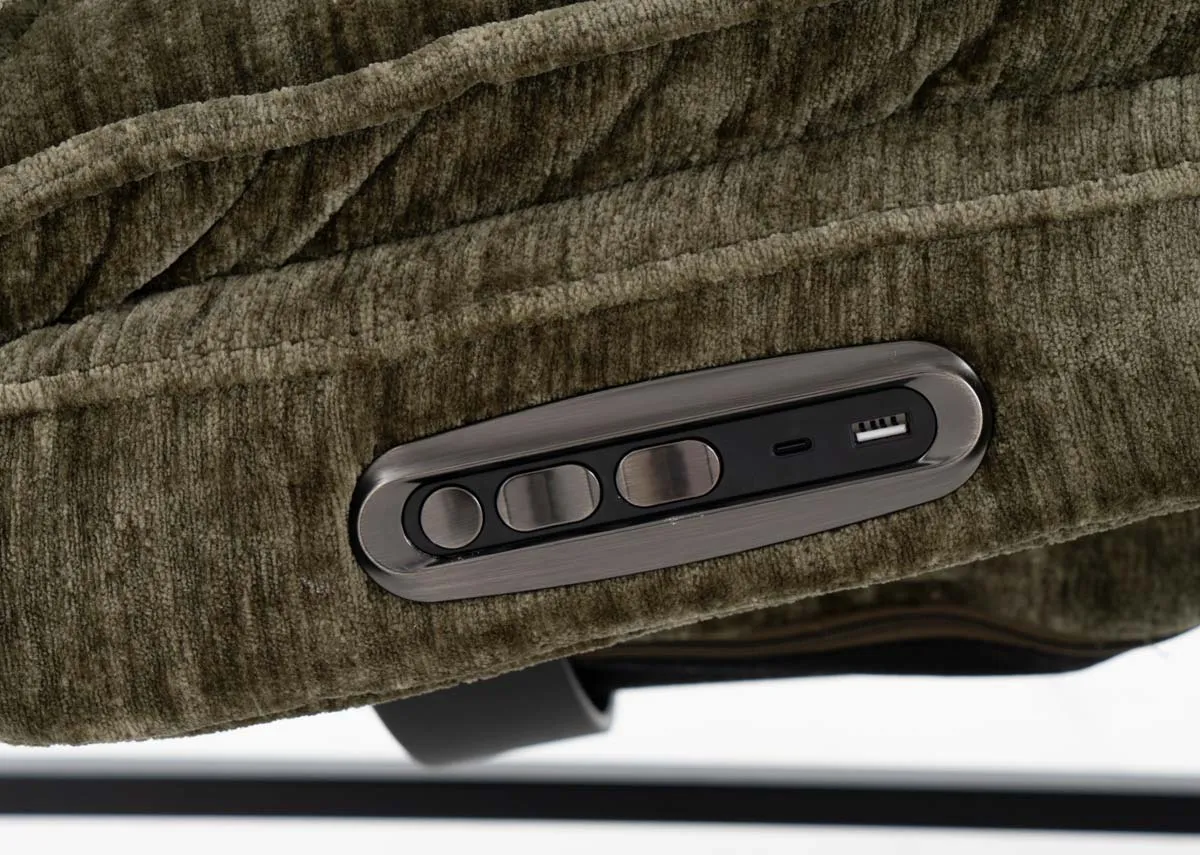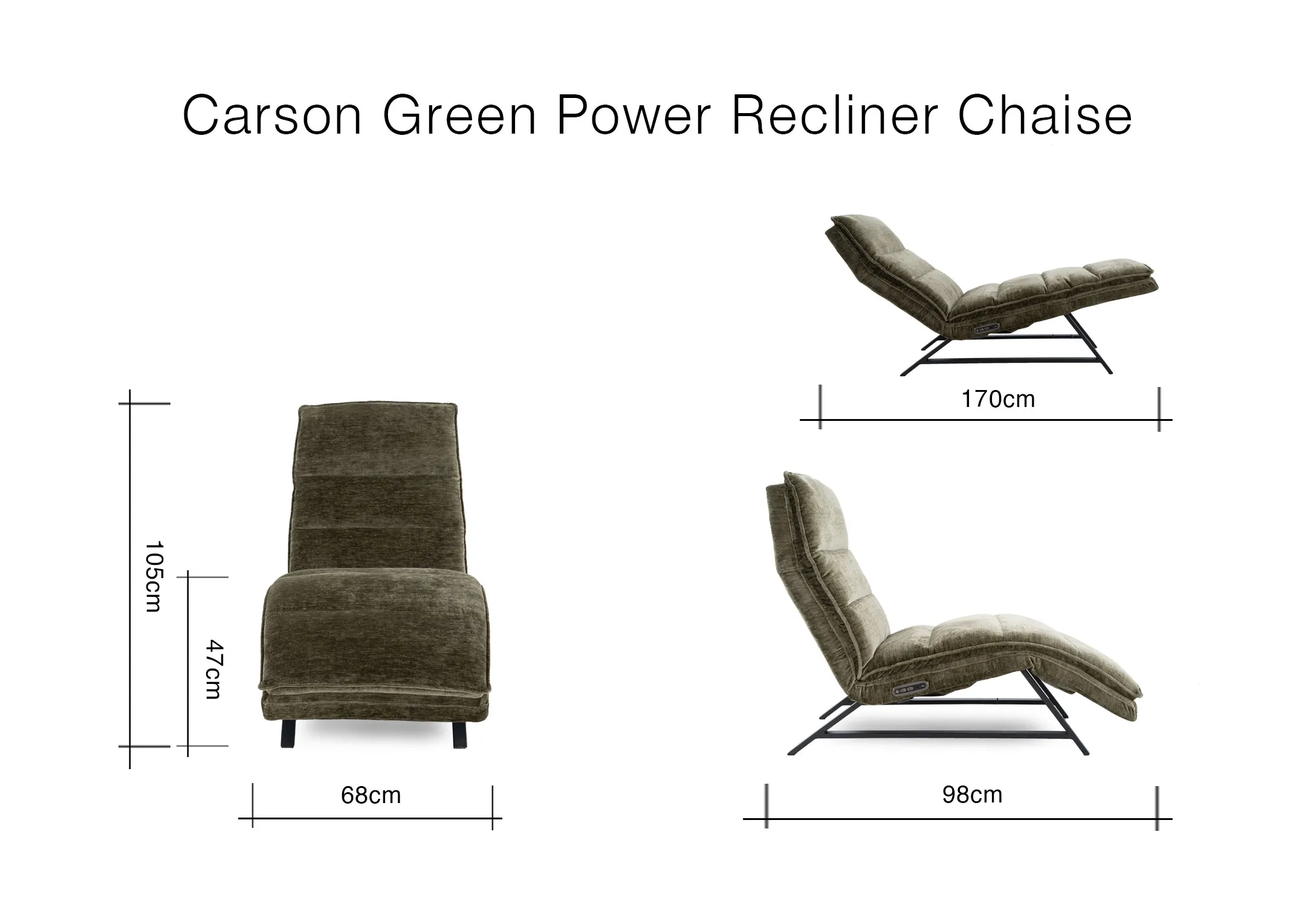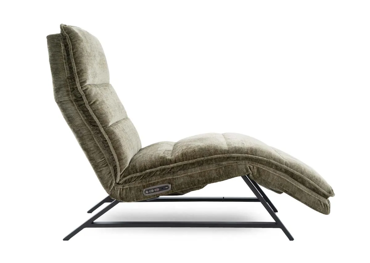 Experience ultimate relaxation and modern style with the Carson Green Fabric Power Reclining Chaise Chair.