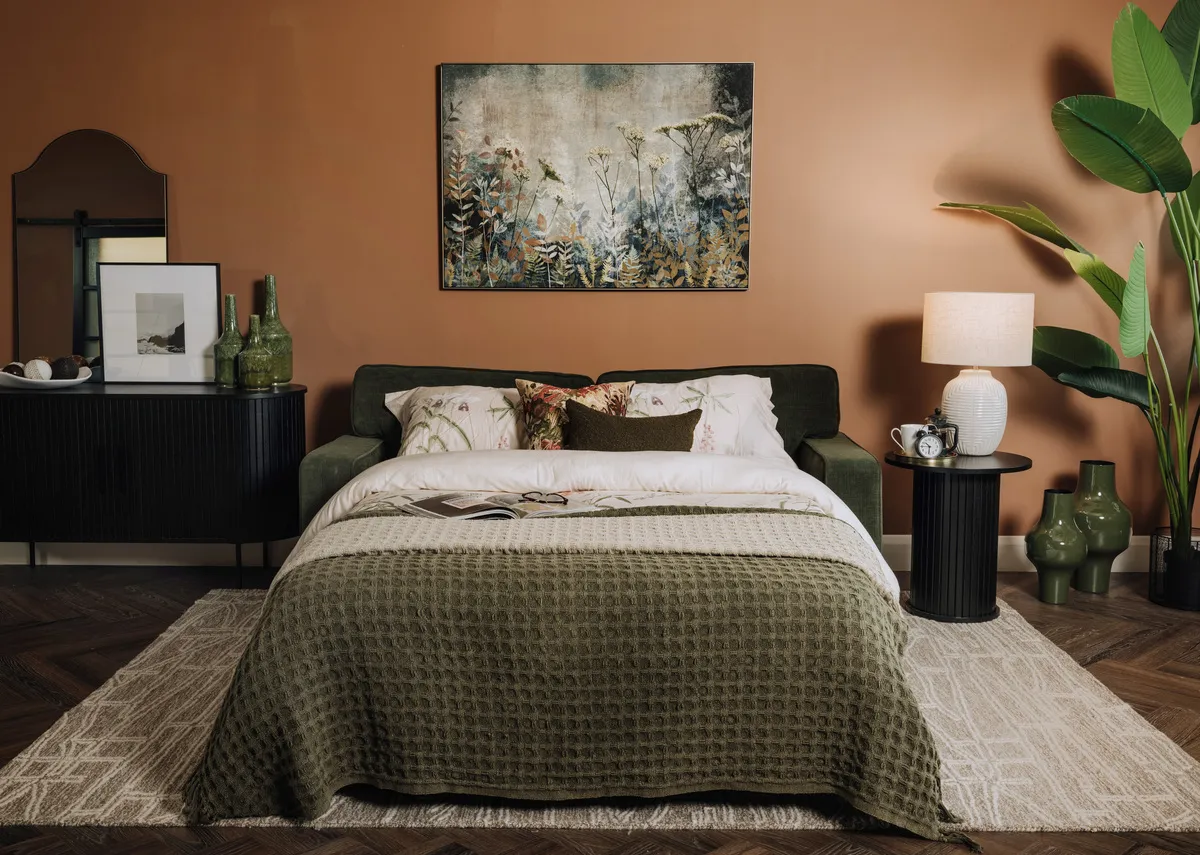 The Nevada green sofabed's chic fabric & sleek design as both a 2 seater sofa and with a simple manoeuvre a comfy double bed.