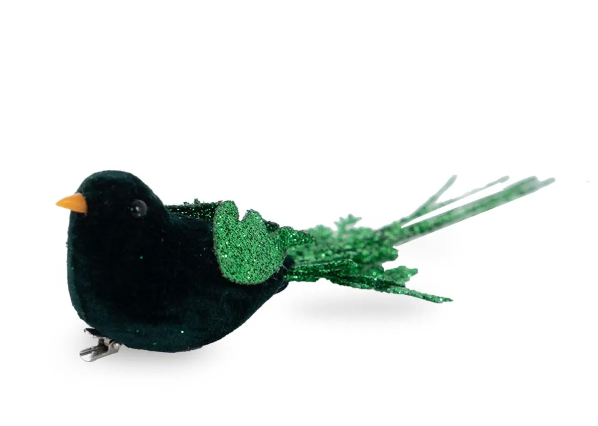 Green Glitter Bird on Clip - Christmas Decoration