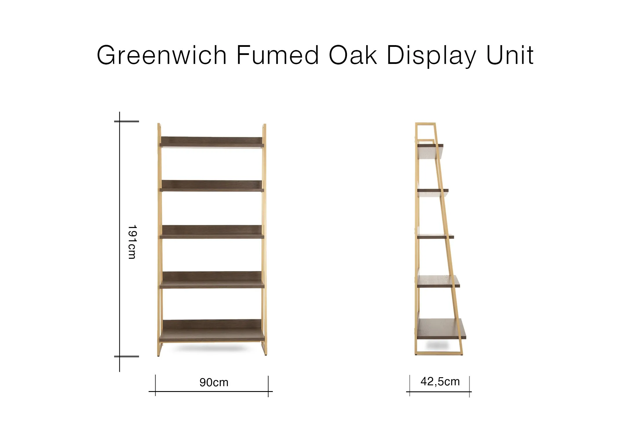 Greenwich Dark Oak & Gold Metal Open Display Unit (Cavan Floor Model)