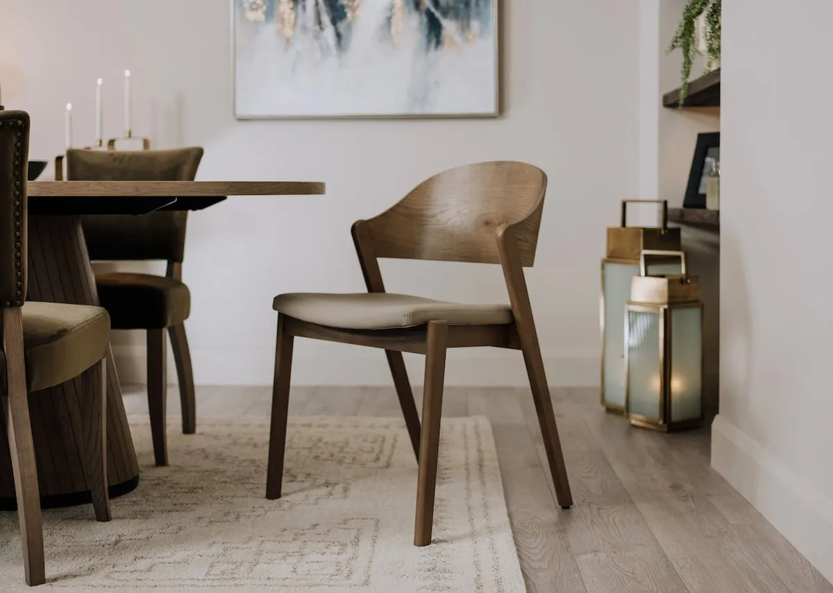 A grey oiled oak & veneer framed dining chair with grey leather cushion seat will keep you seated at the dining table that little bit longer!