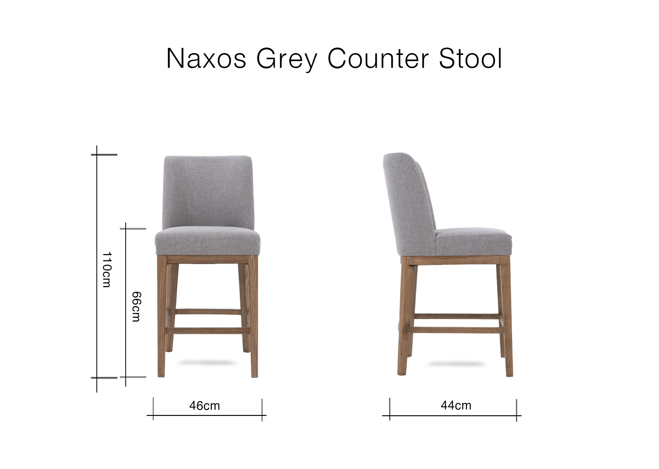 A luxury counter stool with wood leg, plush foam seating and light grey fabric upholstery the Naxos stool is ideal for rustic or country interiors.