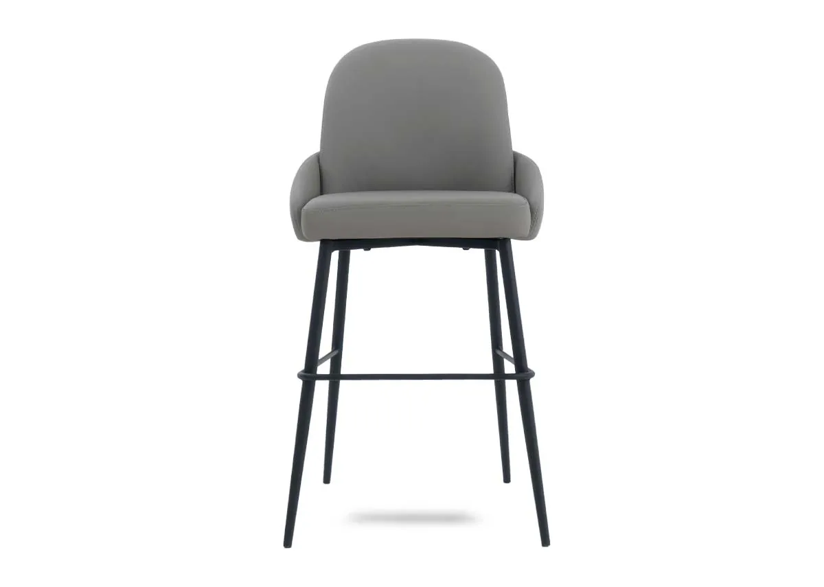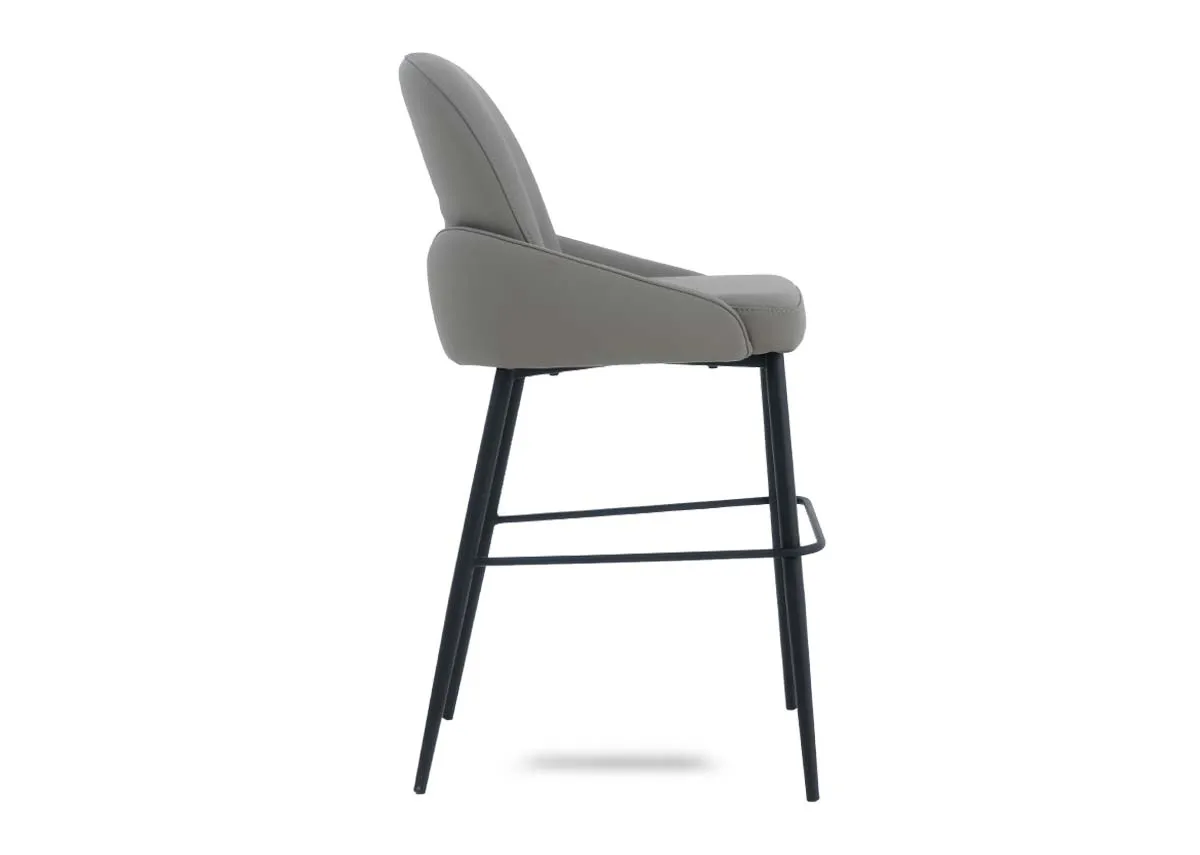 Elevate your kitchen island or bar area with the Tempo counter stool, a sleek grey pu leather seat & robust black metal frame for ultimate contemporary style and comfort.