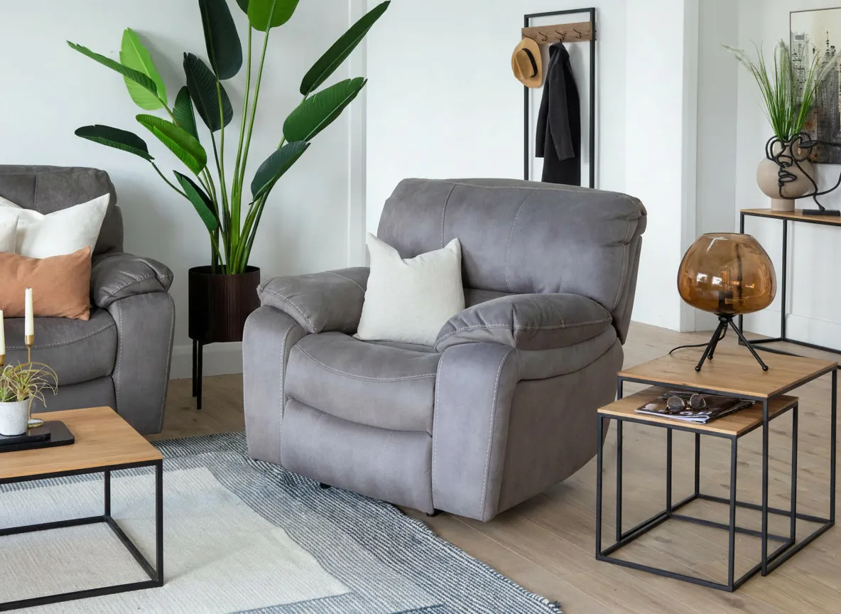 Curl up in comfort with the Bradford grey suede armchair. This recliner adds both style and relaxation to your living space.