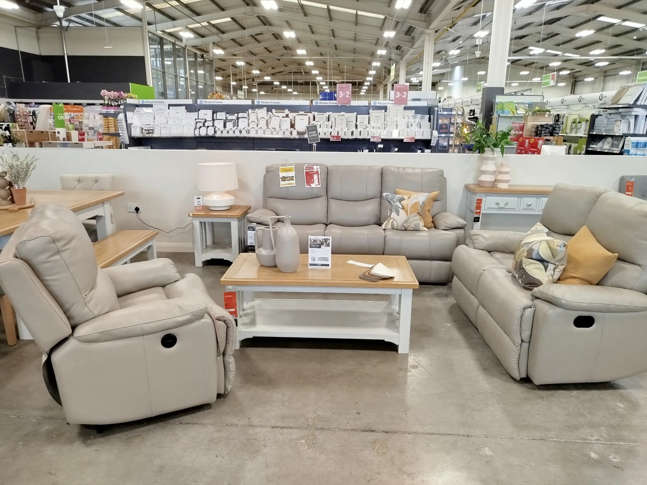 Home>Groove 3 Seater Grey Leather Reclining Sofa & 2 Seater Reclining Sofa & Power Reclining Armchair (Naas Rd Floor Model)