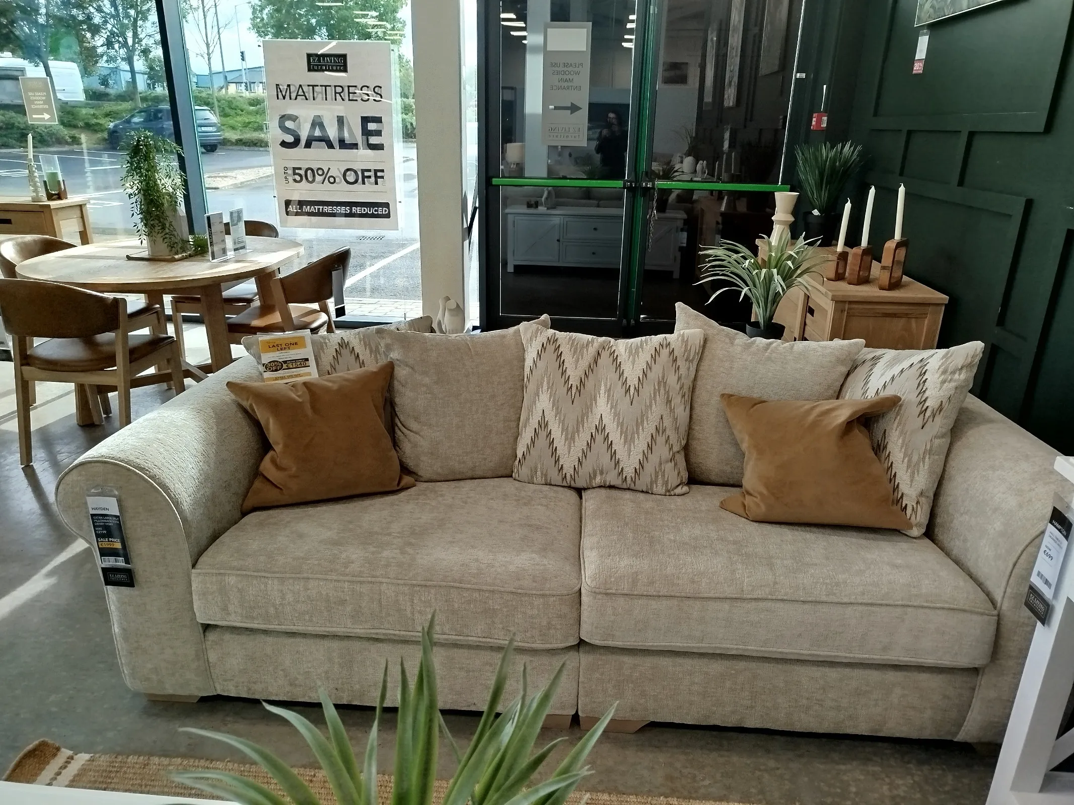 Hayden 4 Seater Cream Accent Pillowback Sofa (Naas Rd Floor Model)