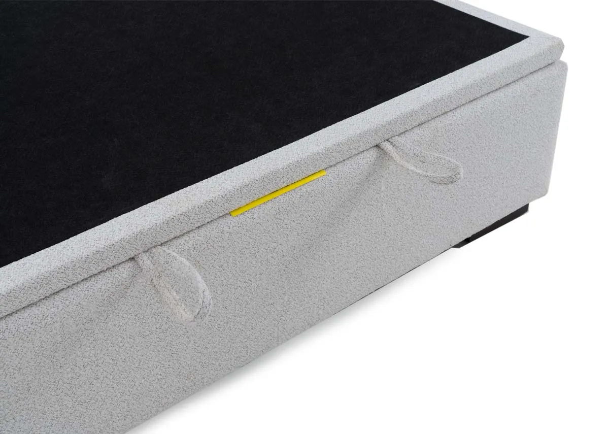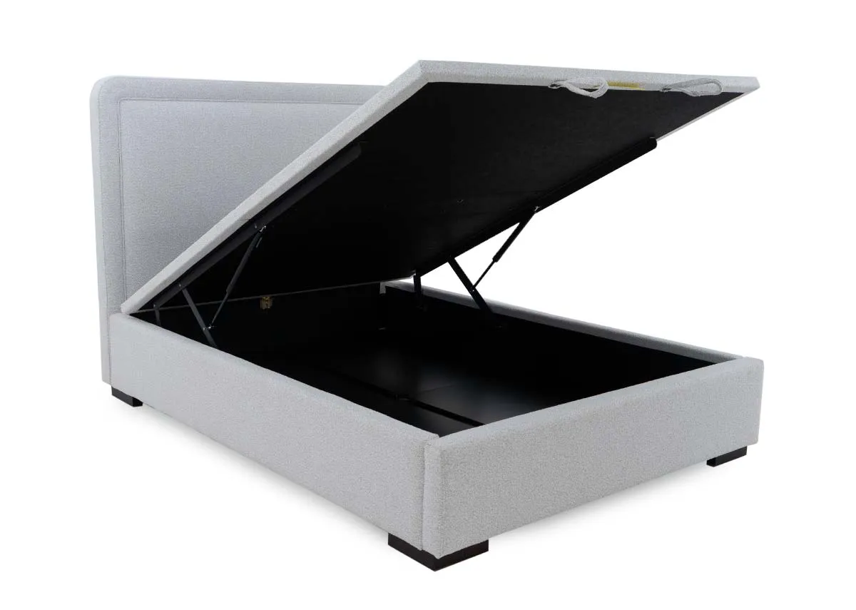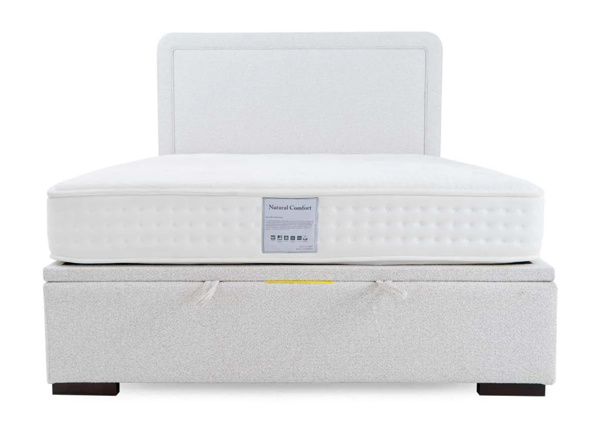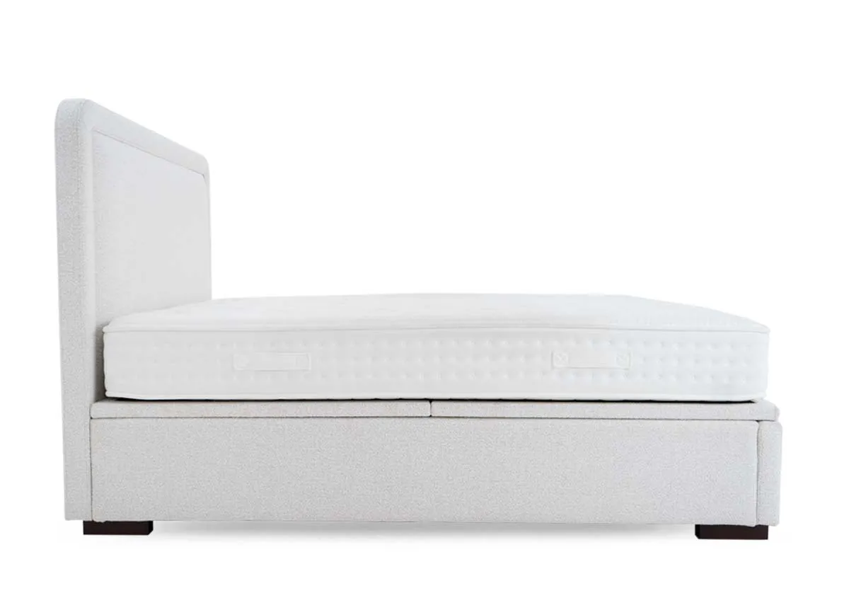 A cream fabric king size ottoman bed, simple and versatile to style with ample storage space in the base.