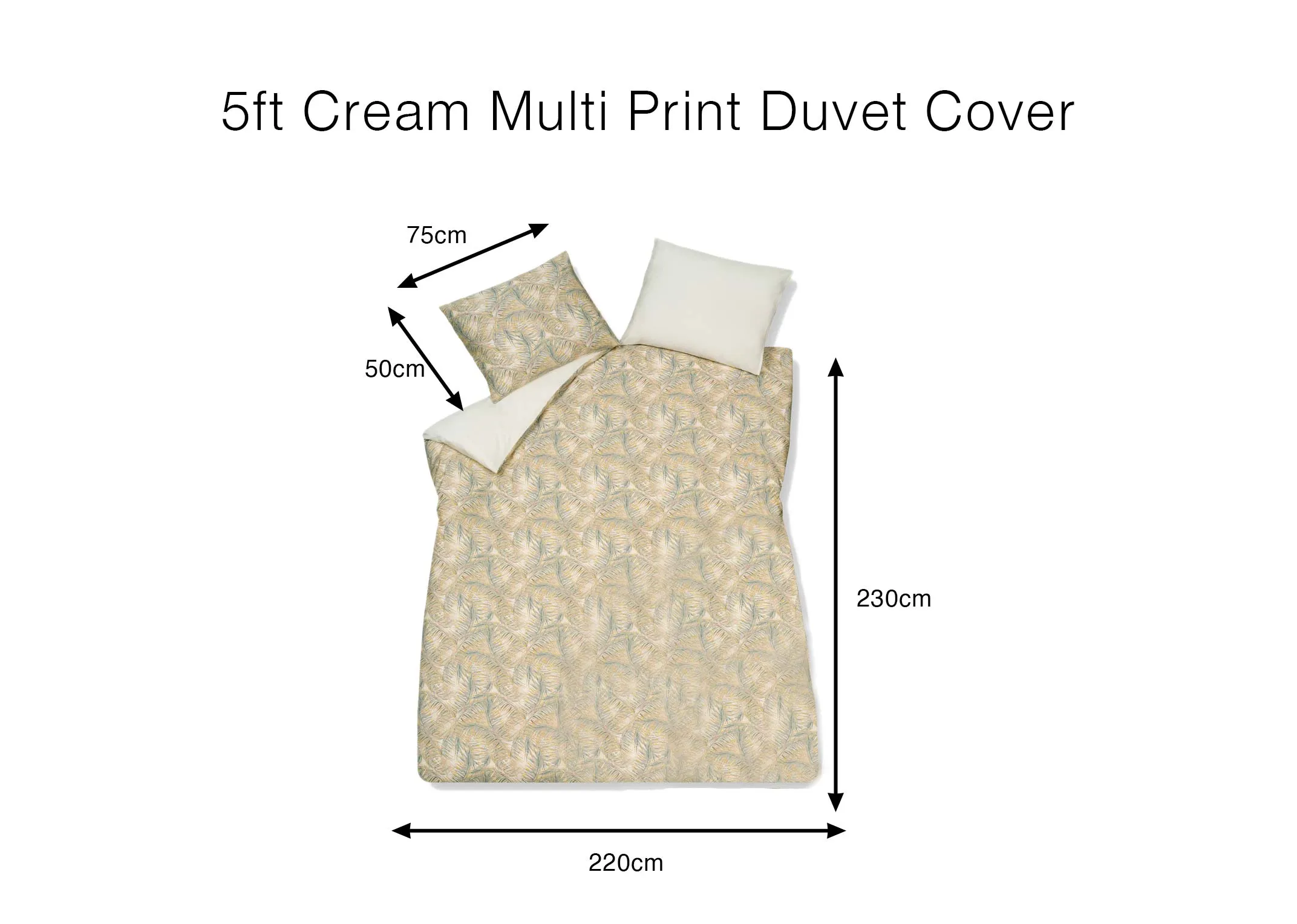 Blending subtle tones and a unique palm tree pattern, the King Size (5ft) Cream Print Duvet Set is sure to create a statement in any bedroom.
