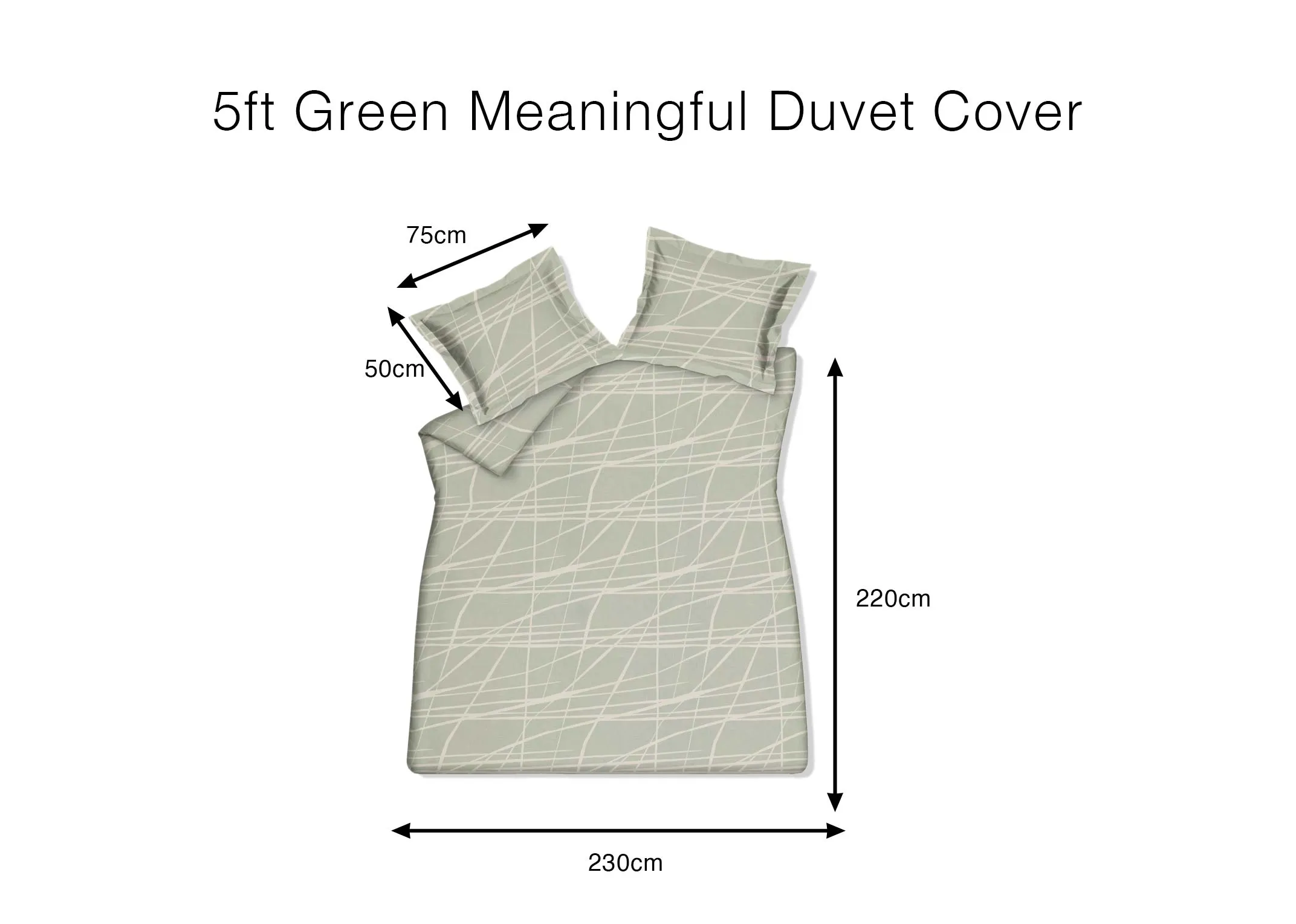 Contemporary pattern meets versatile colour in the Meaningful King Size (5ft) Green Cotton Duvet Set.