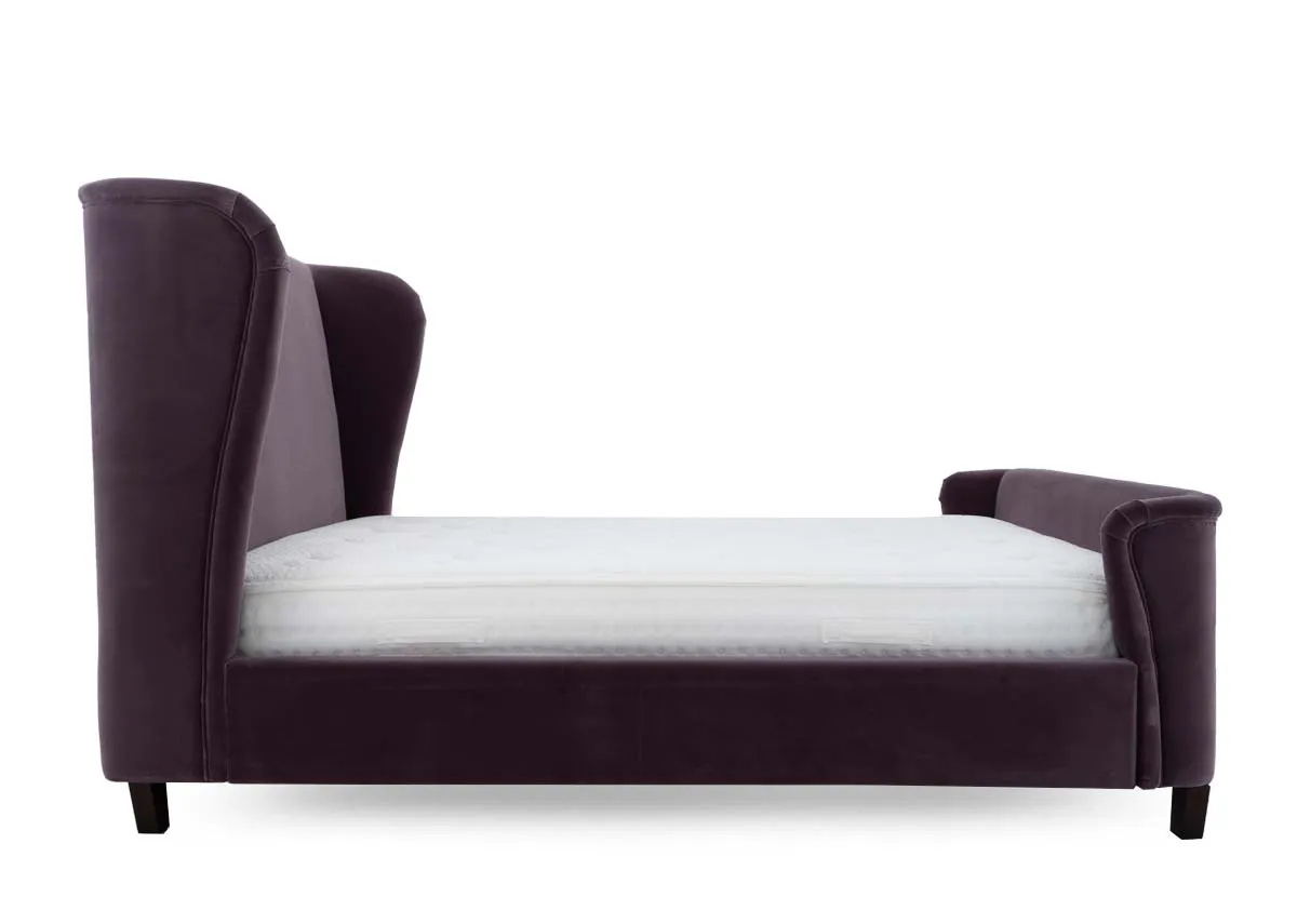 Perfect in purple, the Maison King 5ft bed frame is upholstered in a lilac cotton velvet and features a large winged headboard for comfort.