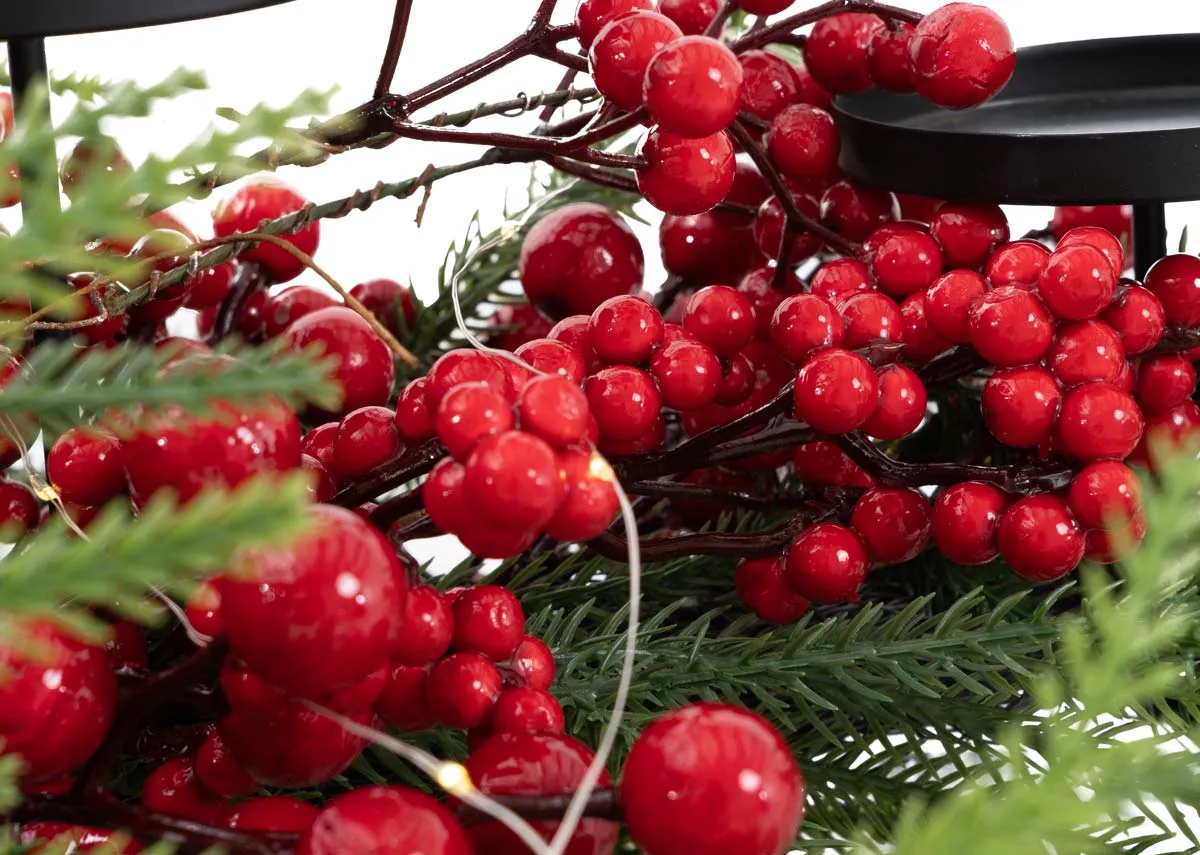 Illuminate your festive celebrations with this beautiful red berry and LED candle holder, creating a warm, magical glow.