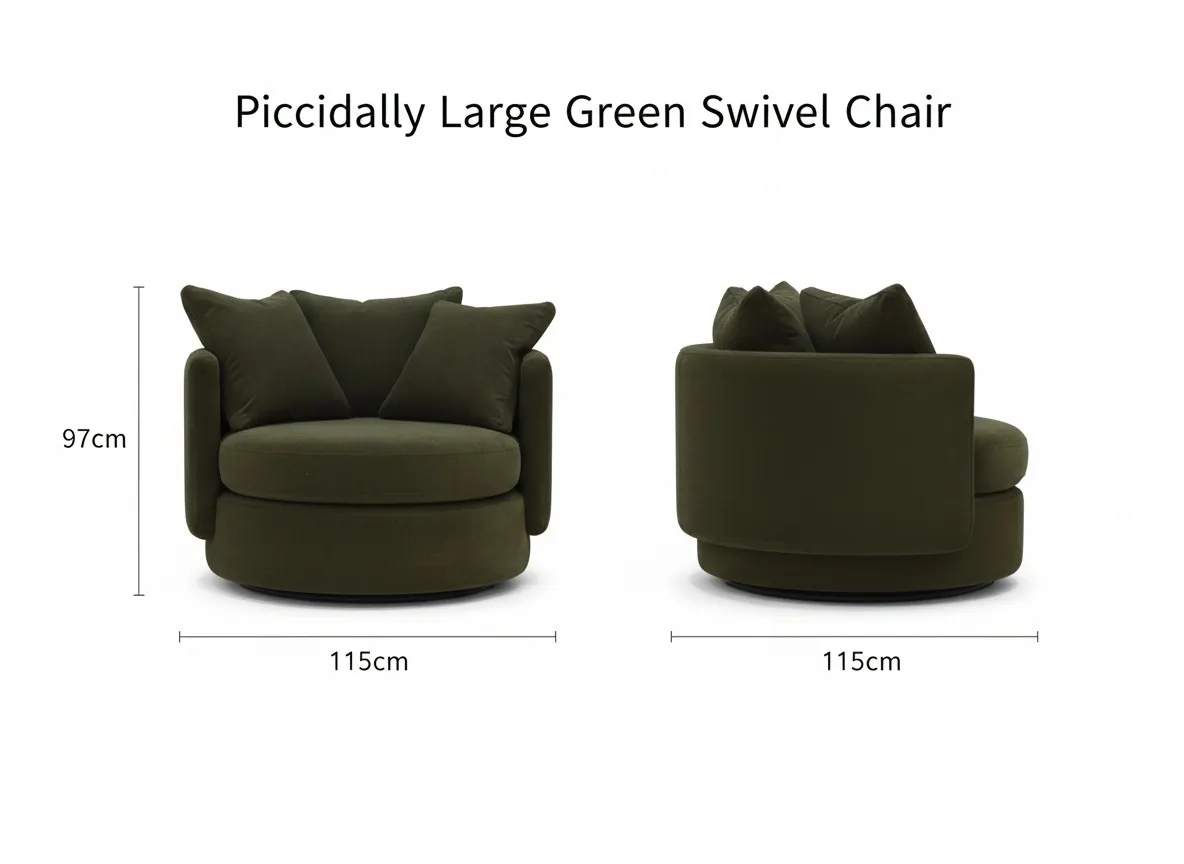Indulge in luxurious comfort and versatile style with the Piccadilly Large Green Fabric Swivel Chair, designed for effortless relaxation and a sophisticated touch.