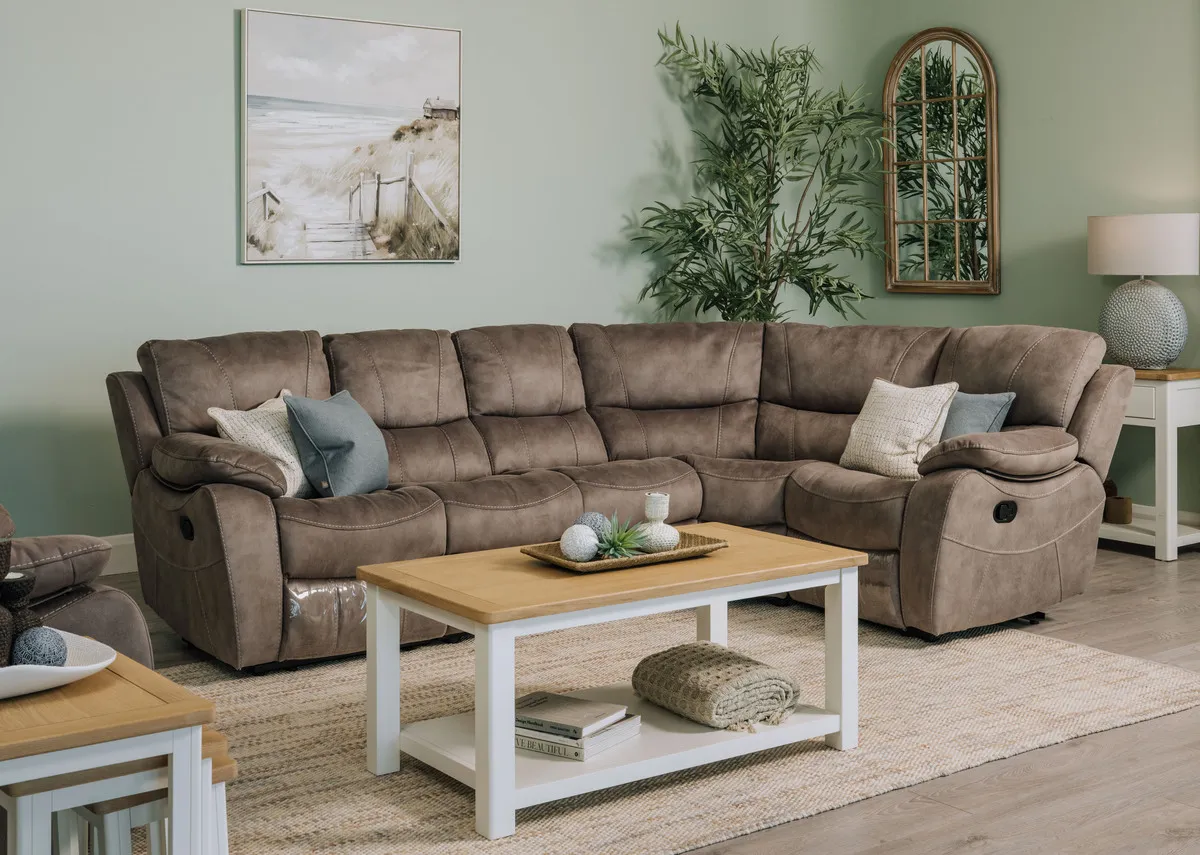 Large Sultry Grey Fabric Reclining Corner Sofa - Hannah