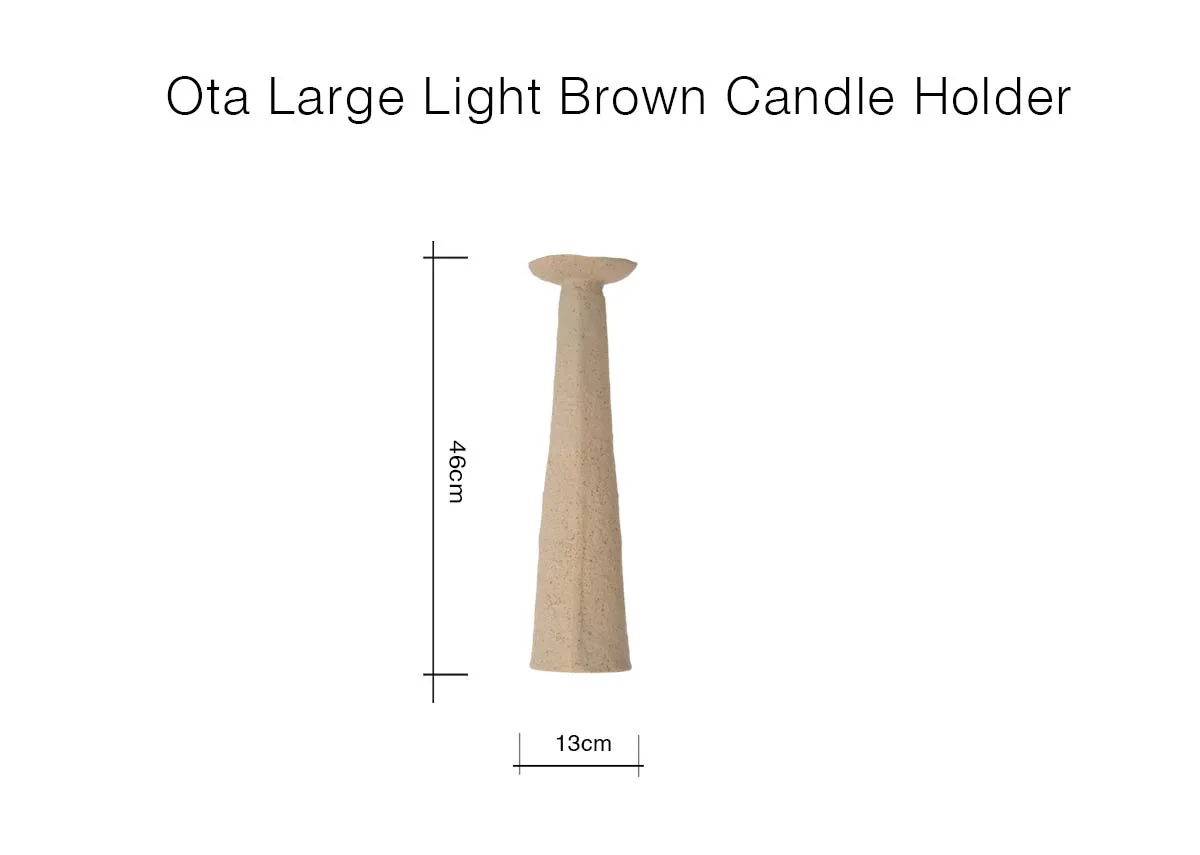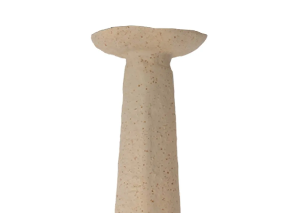 A large elegant tapering pillar candle holder with a cup top to hold a candle.