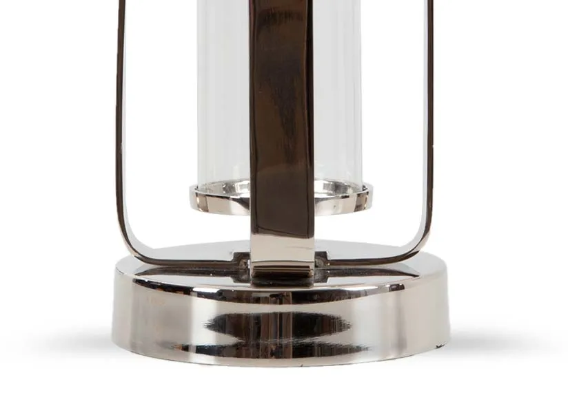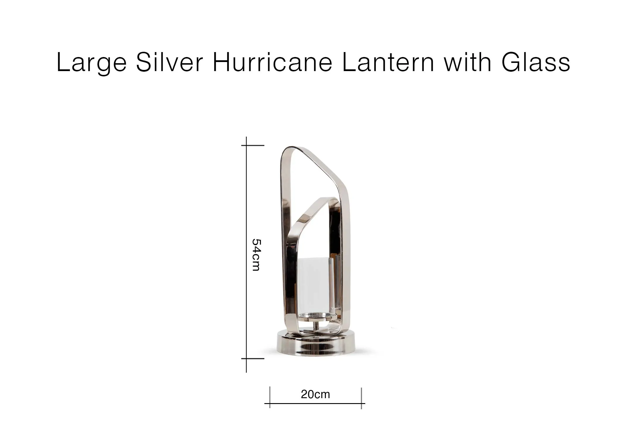Bring glowing appeal and glamour to any space with the silver-finish Large Hurricane Lantern with Glass.