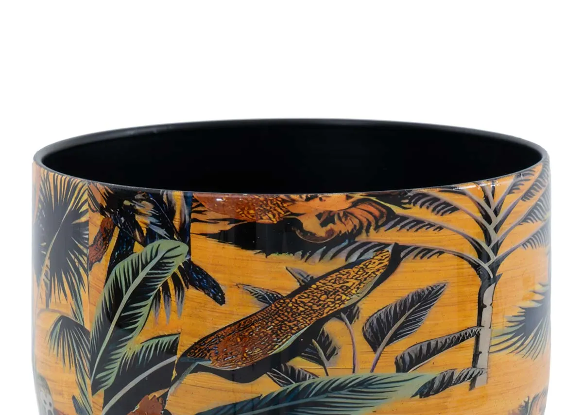 Introduce a touch of exotic charm to your home with this vibrant tropical yellow planter.