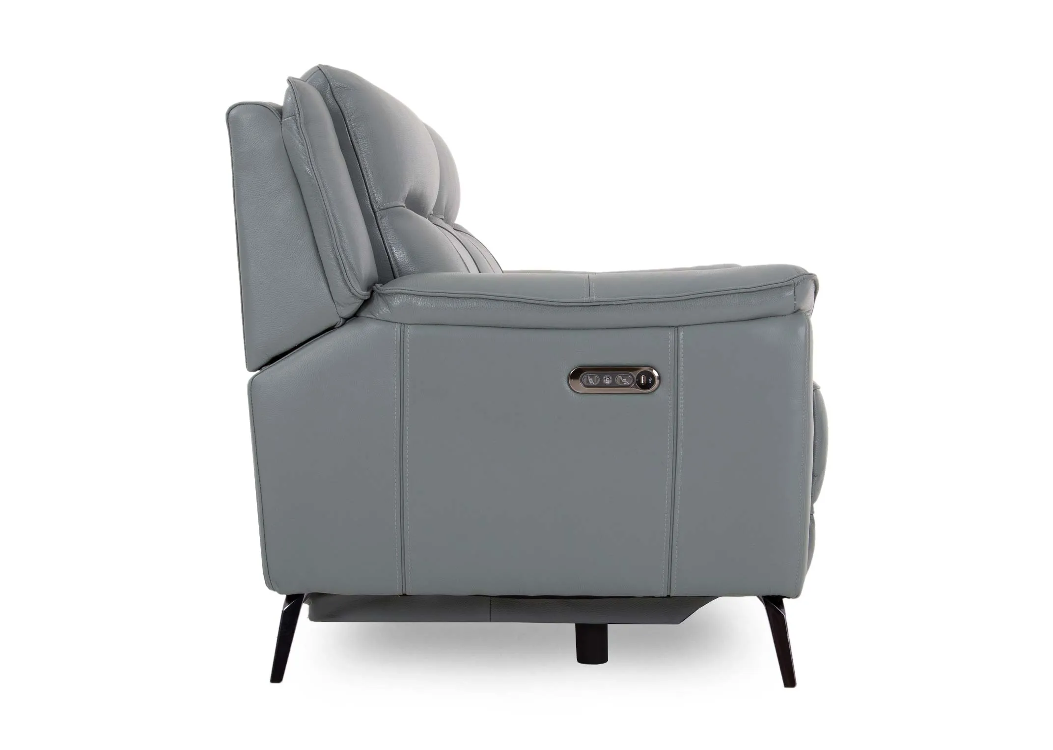Style, comfort, and modern-day convenience are combined to bring you the Verona Light Blue Leather Power Recliner.