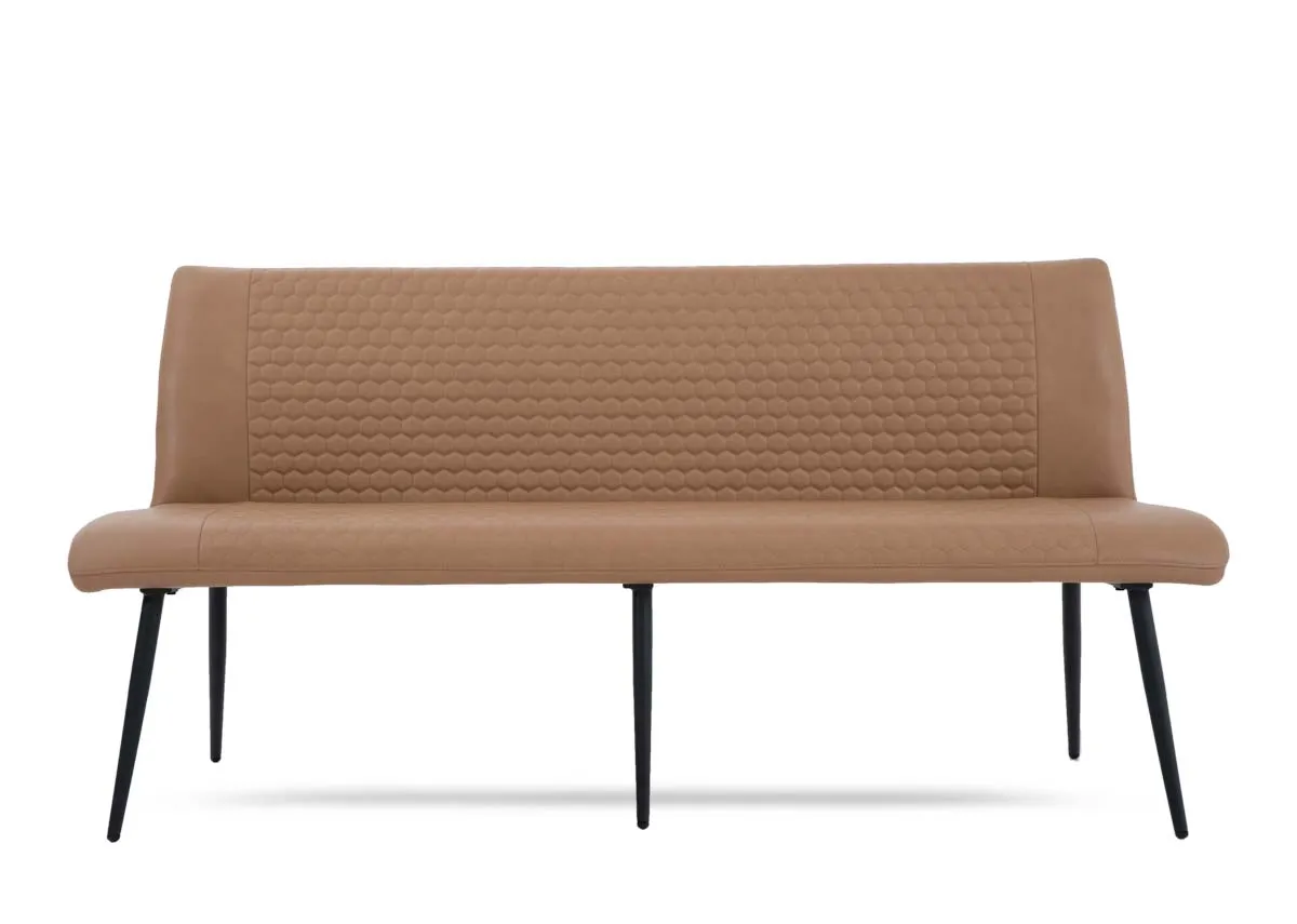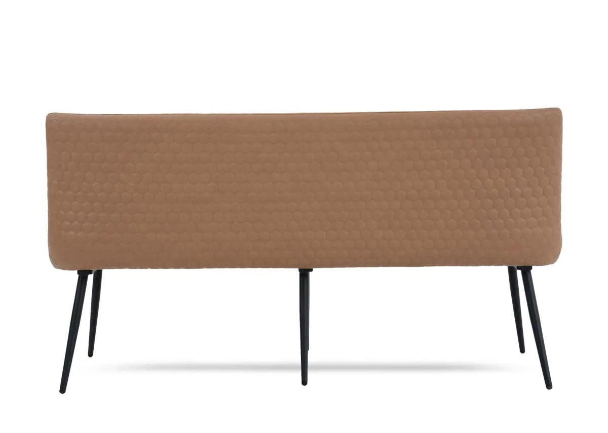 Industrial in design, the Barton tan bench boasts a faux leather padded seat and high backrest, with a honeycomb pattern & black metal frame
