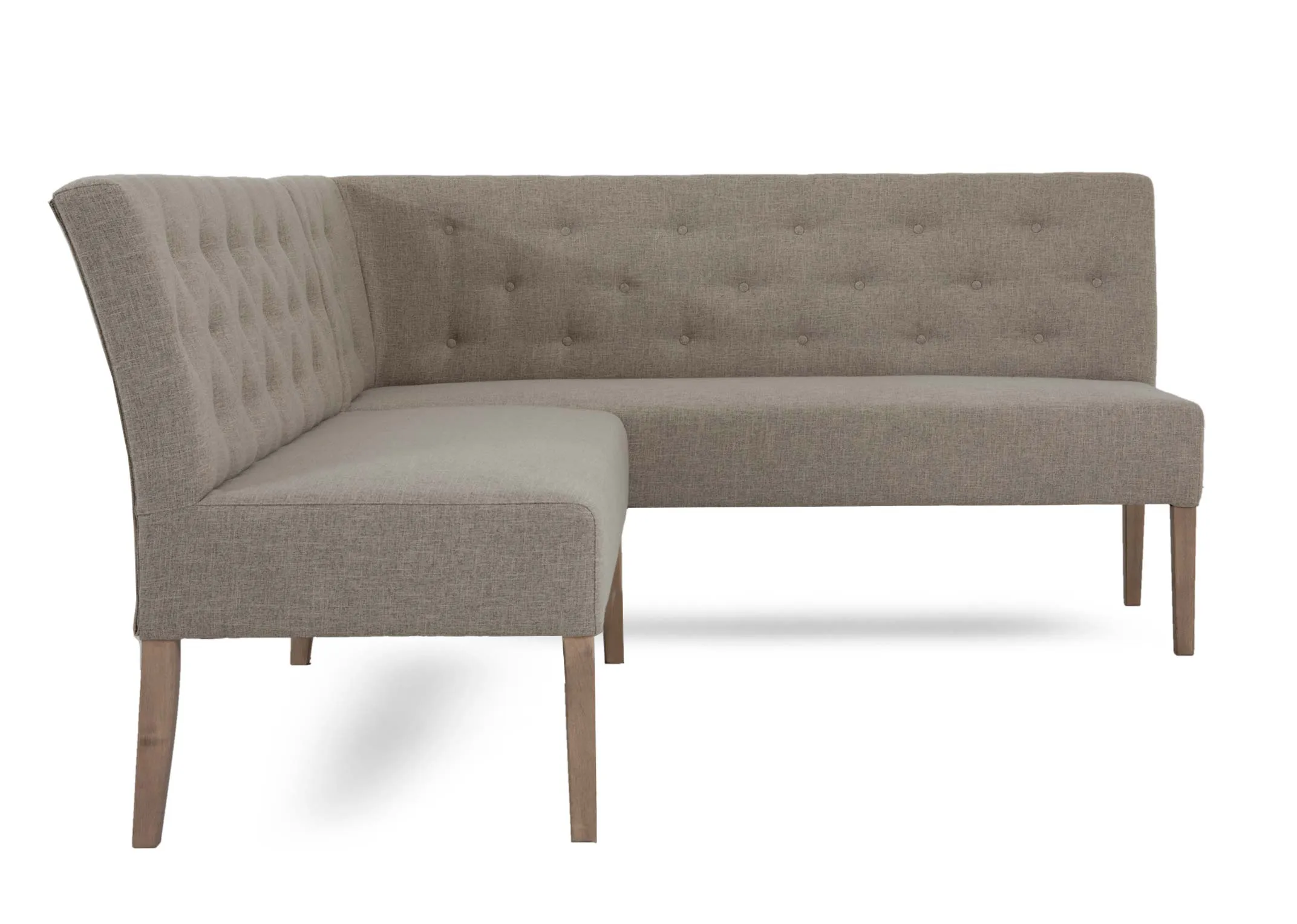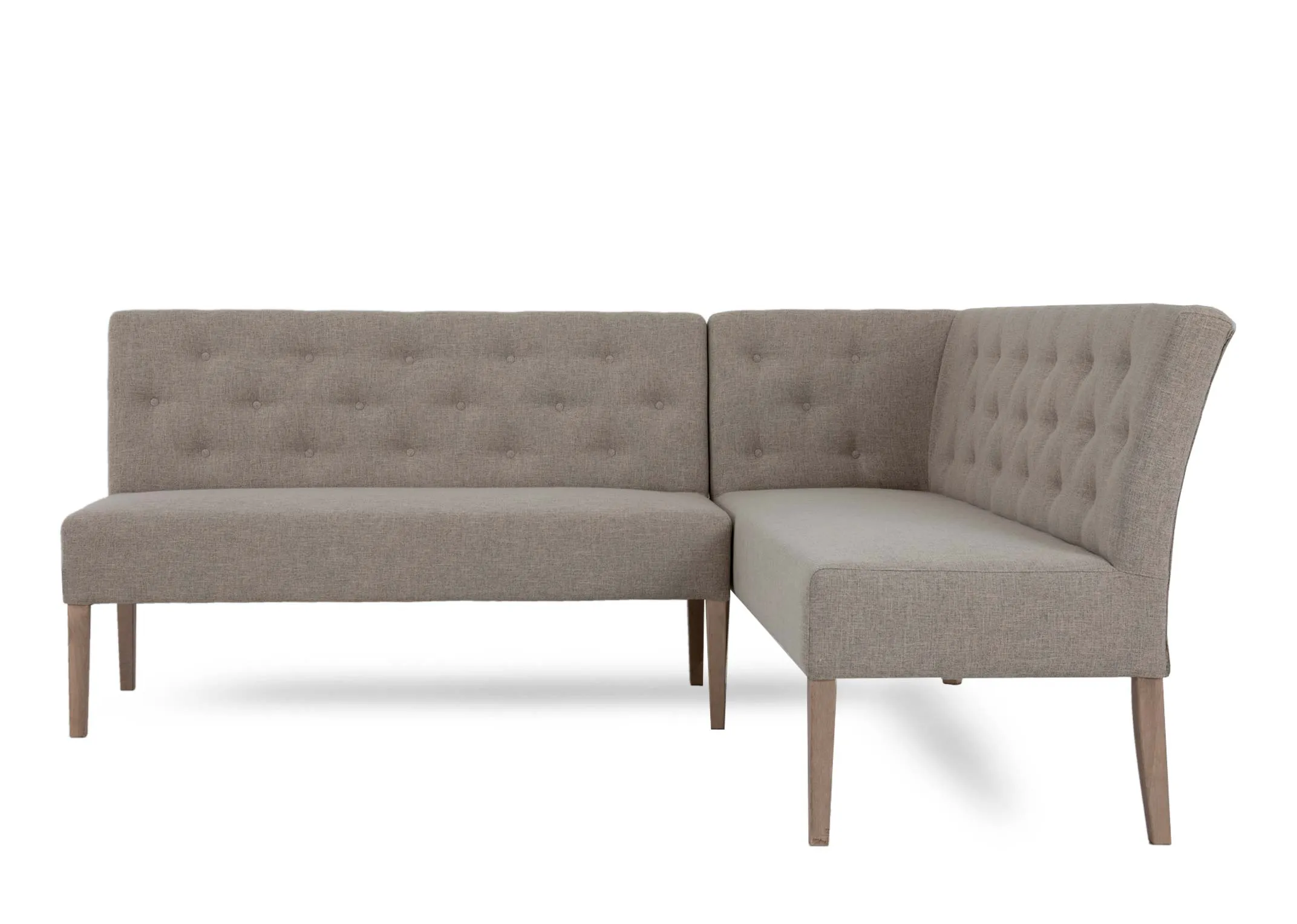 With its timeless tufted button detailing and spacious seating, the Stanford Grey Corner Bench is the perfect choice for any large dining space.