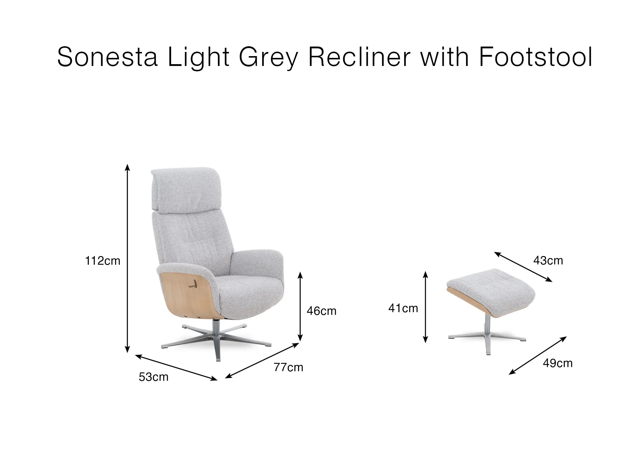 Light Grey Fabric Recliner & Footstool - Sonesta