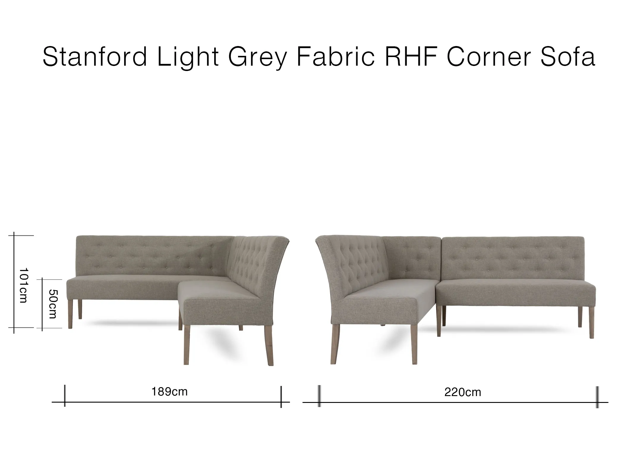 Light Grey Fabric RHF Corner Dining Bench - Stanford