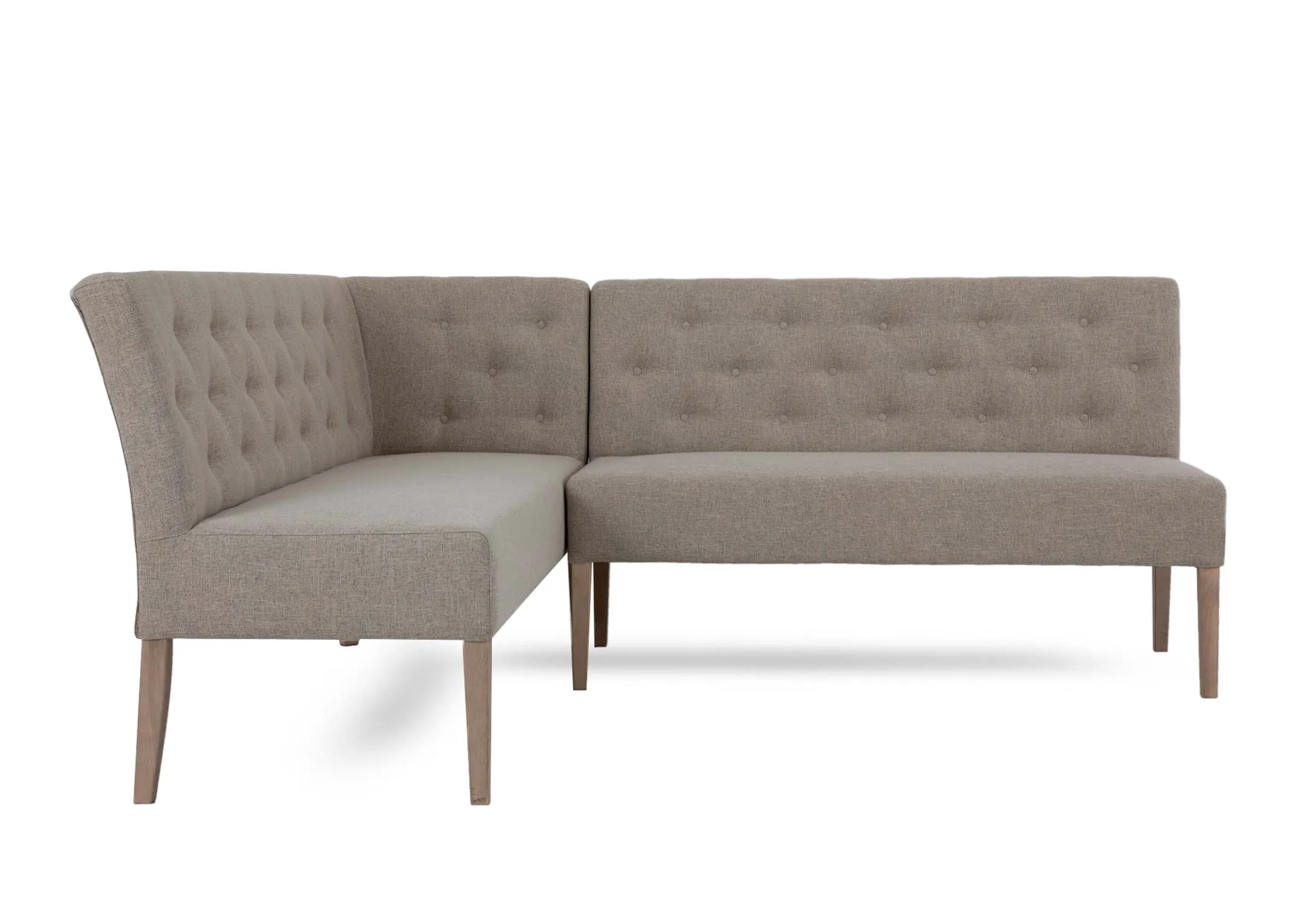 With its timeless tufted button detailing and spacious seating, the Stanford Grey RHF Corner Bench is the perfect choice for any large dining space.