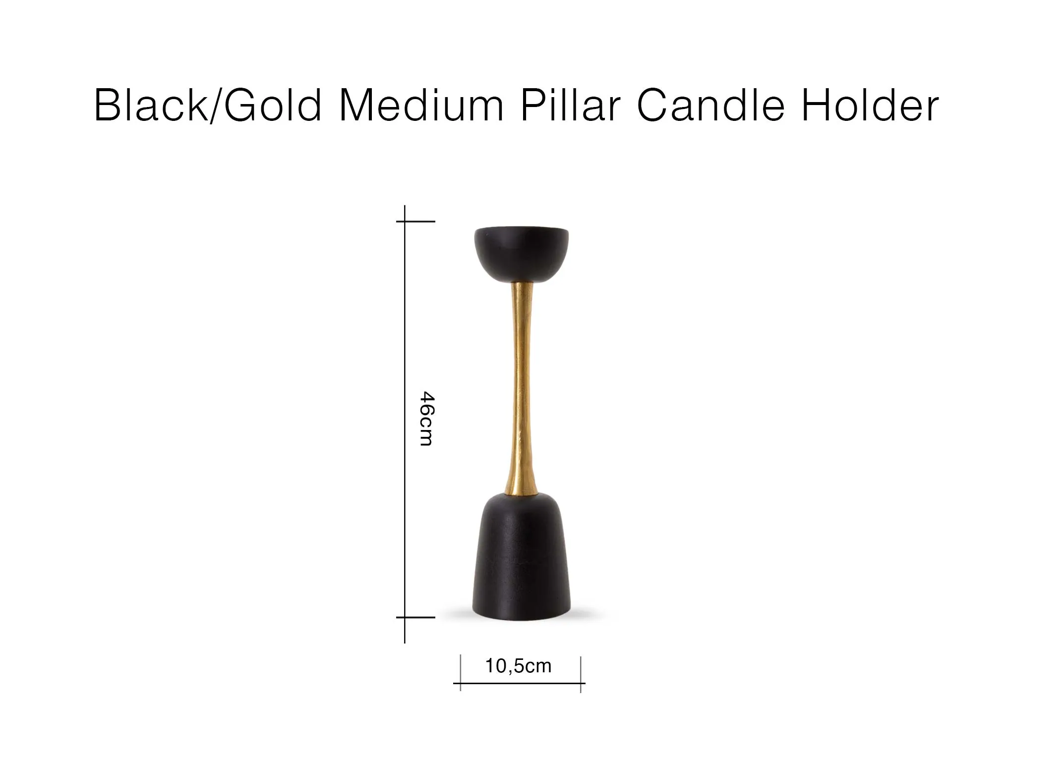 Medium Black & Gold Pillar Candle Holder - Deco