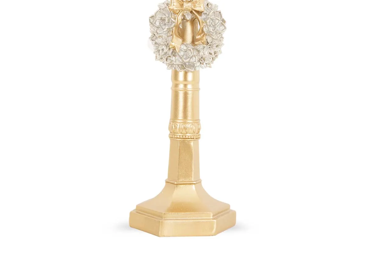 Metallic Gold LED Lamppost with Wreath- Christmas Figurine
