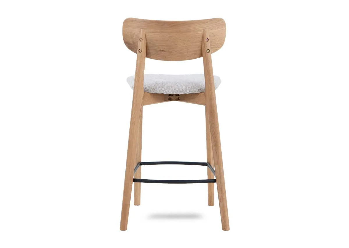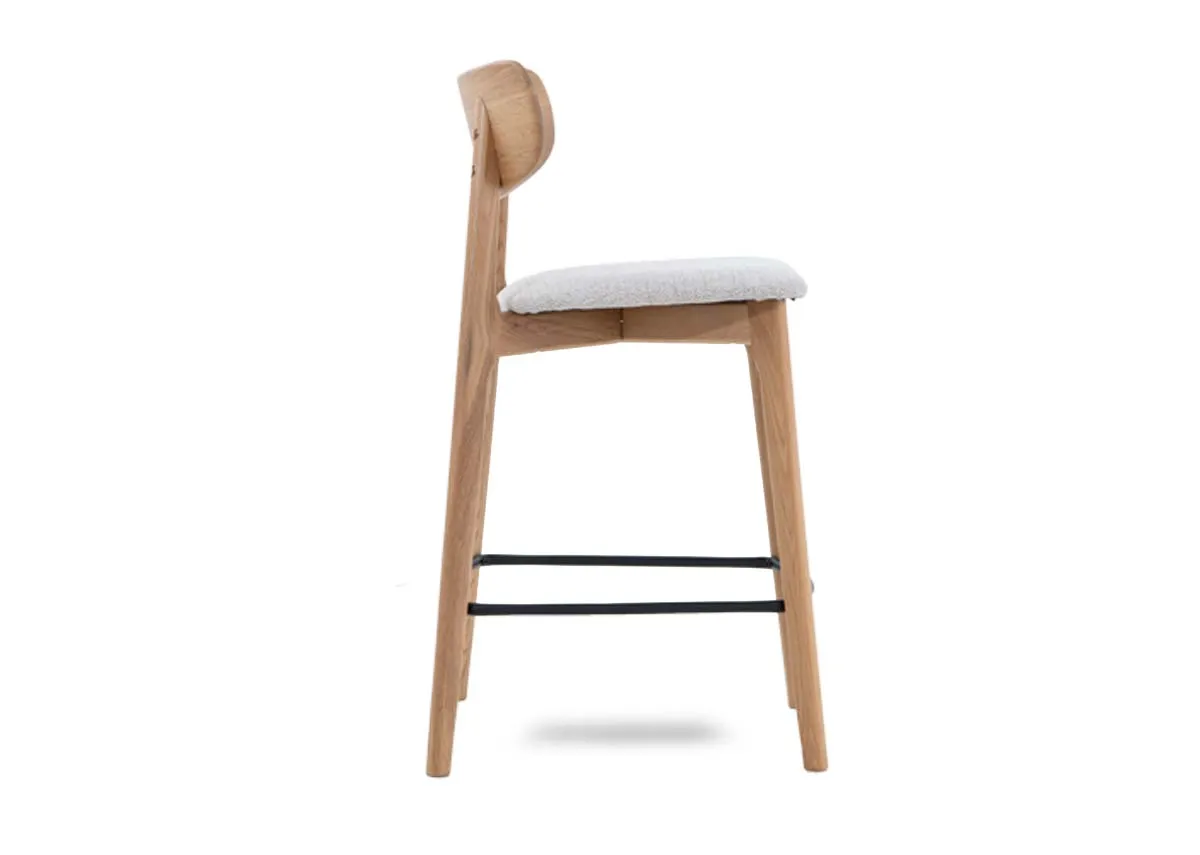 Natural Oak Bar Stool With Cream Fabric Seat - Bari