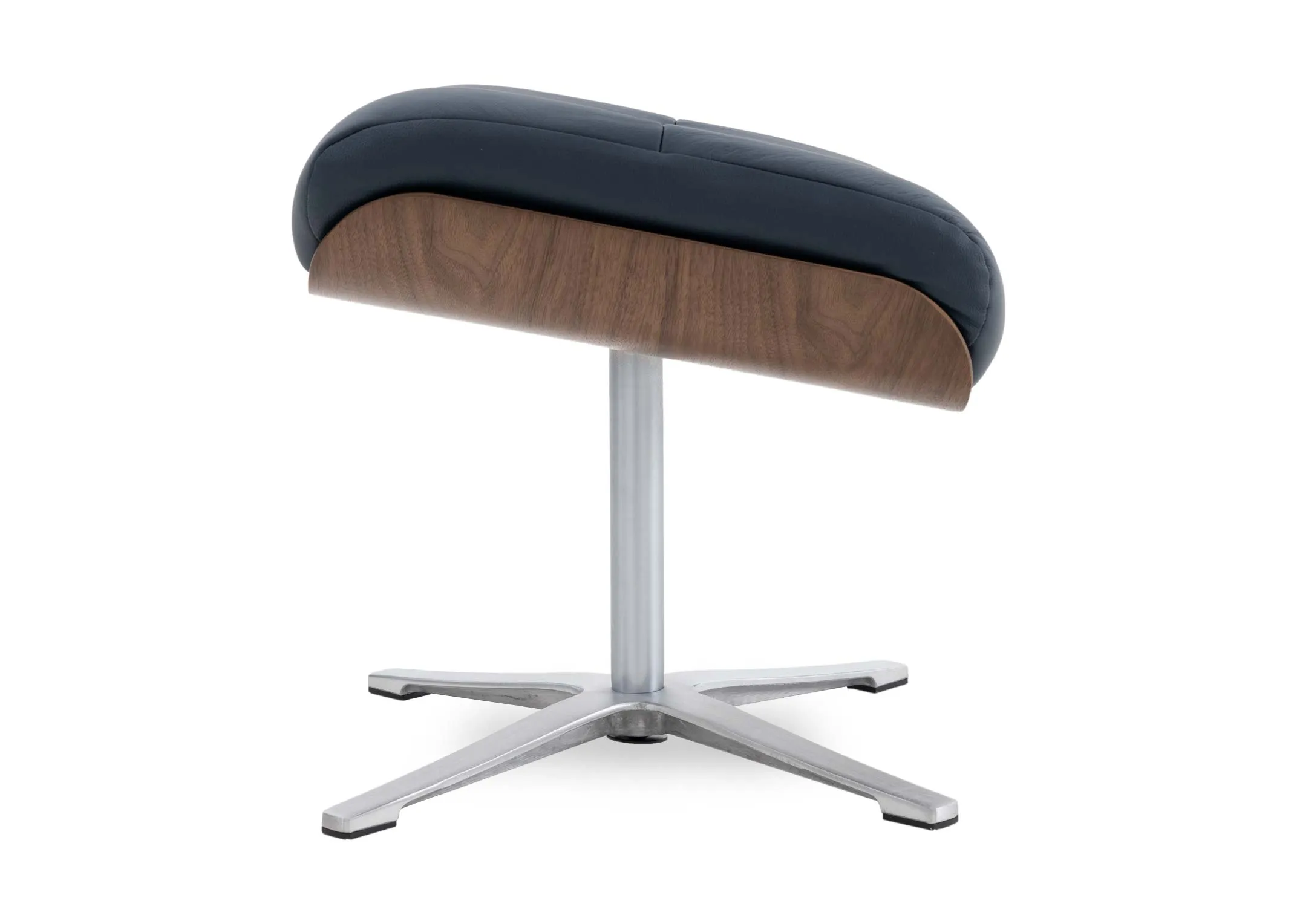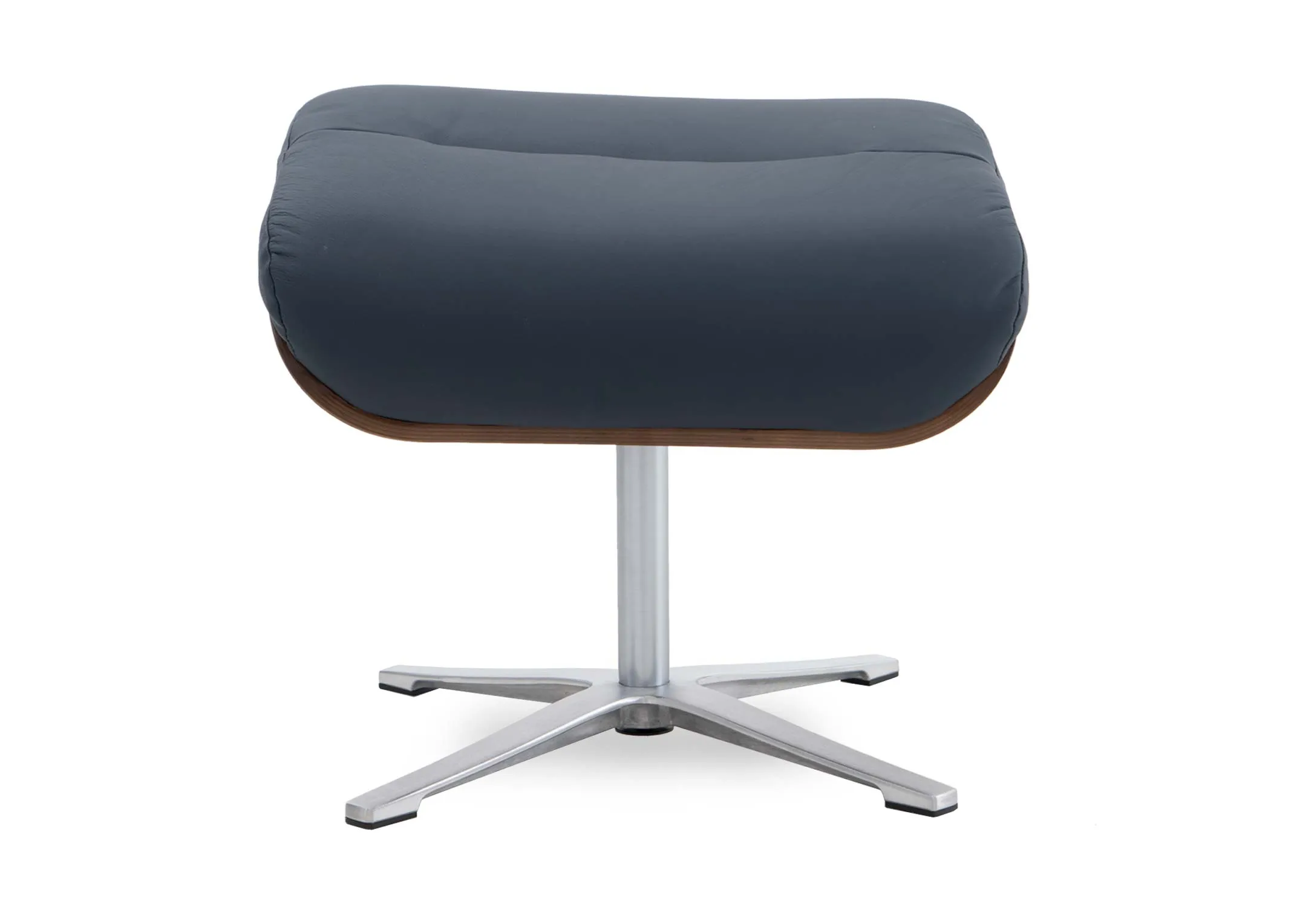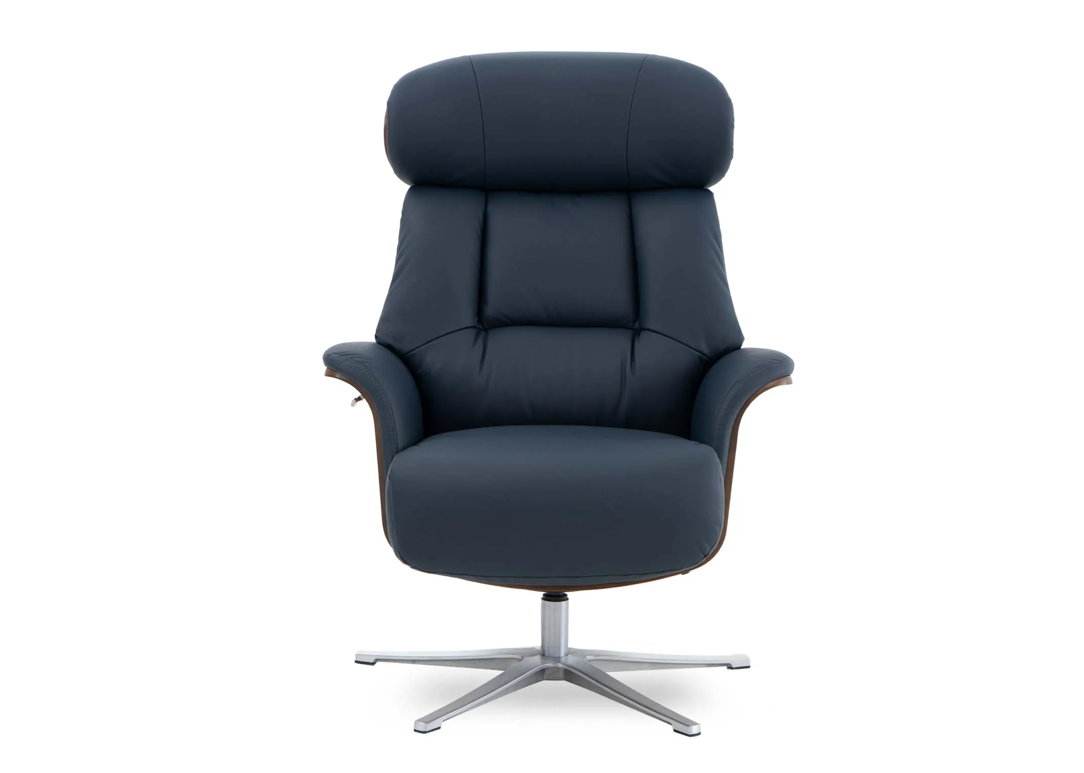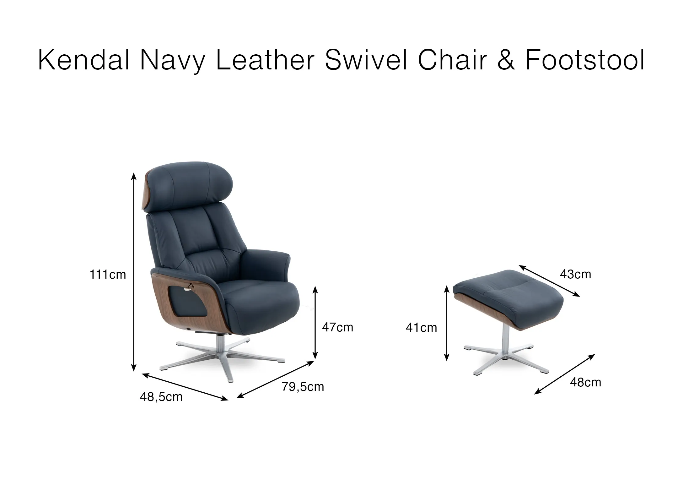 Navy Leather Recliner Swivel Chair & Footstool - Kendal