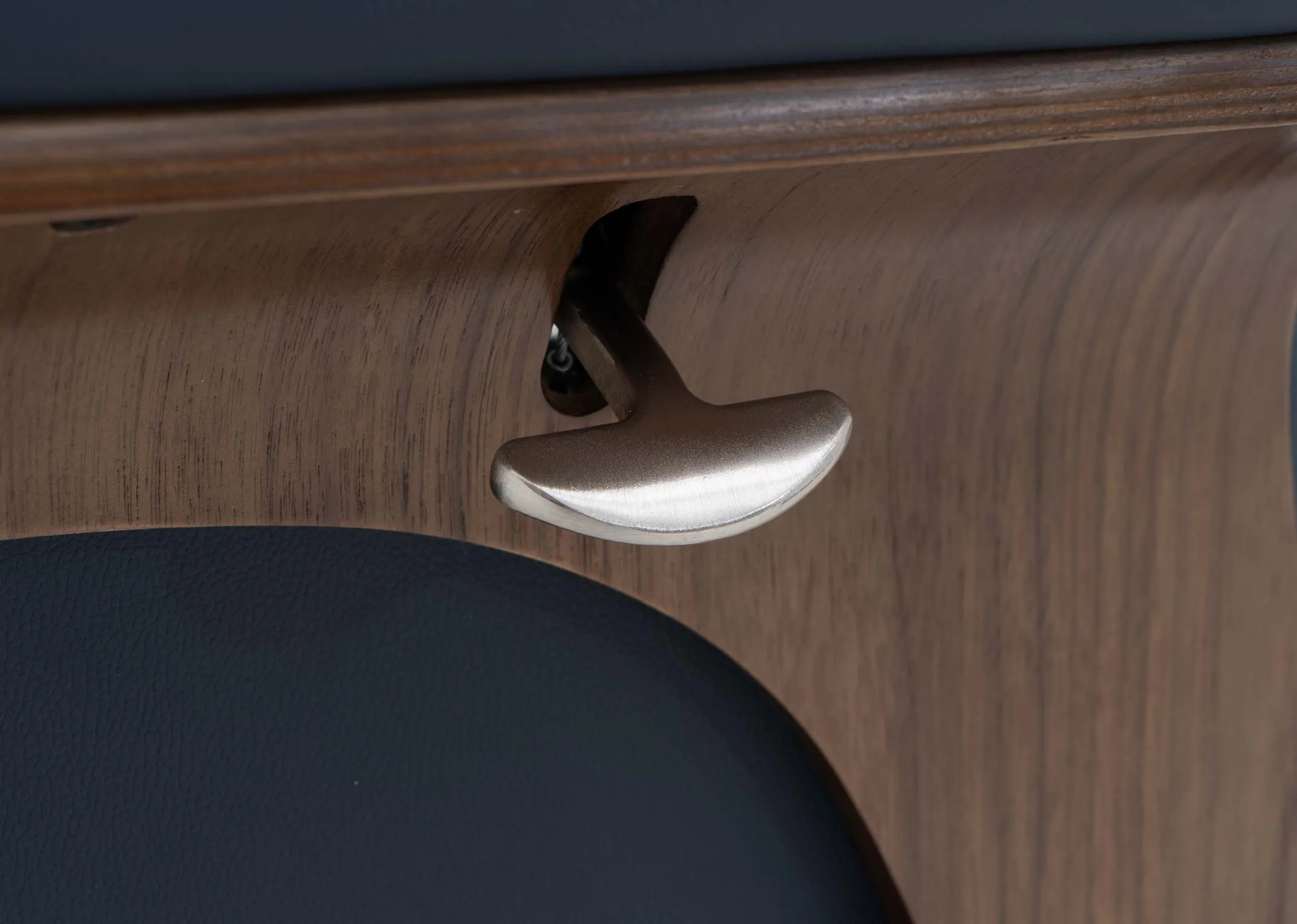 Retro in style the Kendal navy leather recliner & footstool set is a must for any style of interior.