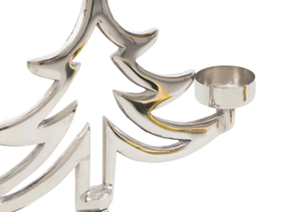 Nickel Xmas Tree with 2 T-Lights - Christmas Candle Holder