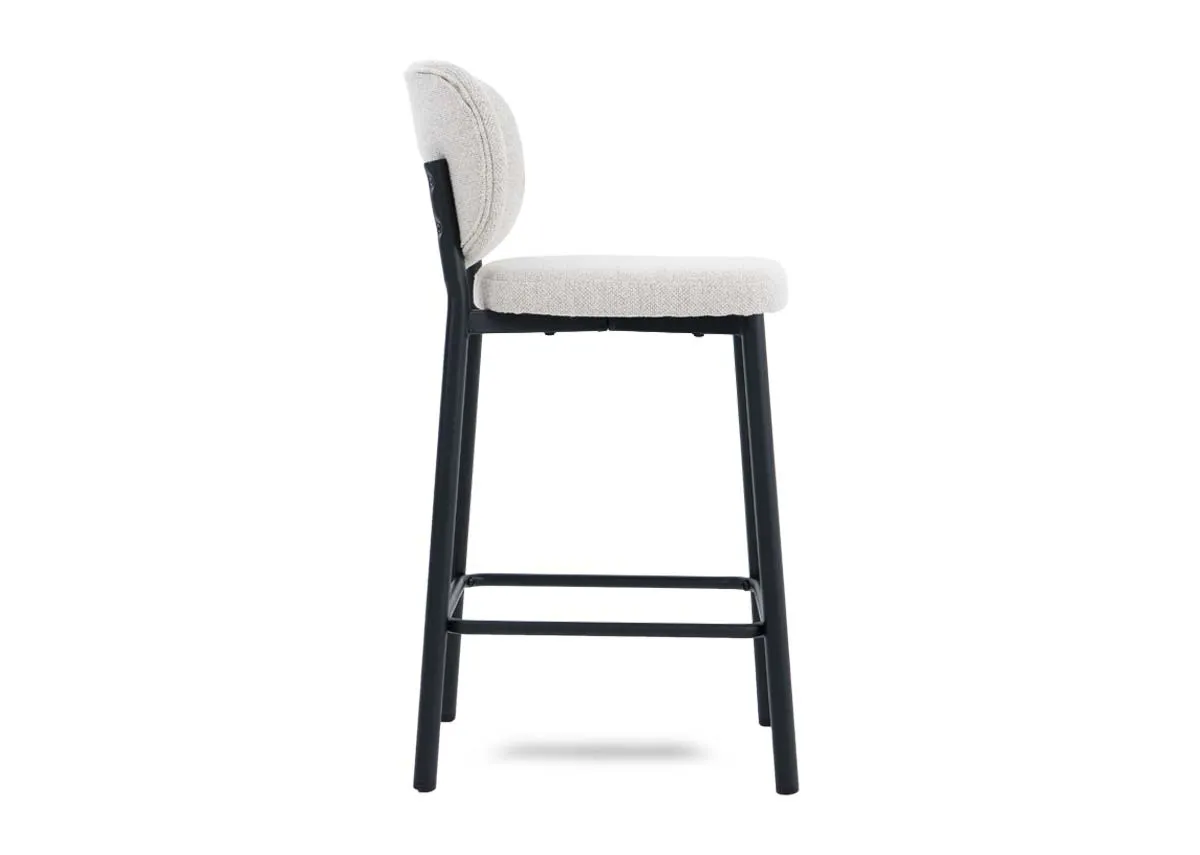 The Swan counter bar stool boasts a metal frame with off white textured upholstery, comfy and stylish.