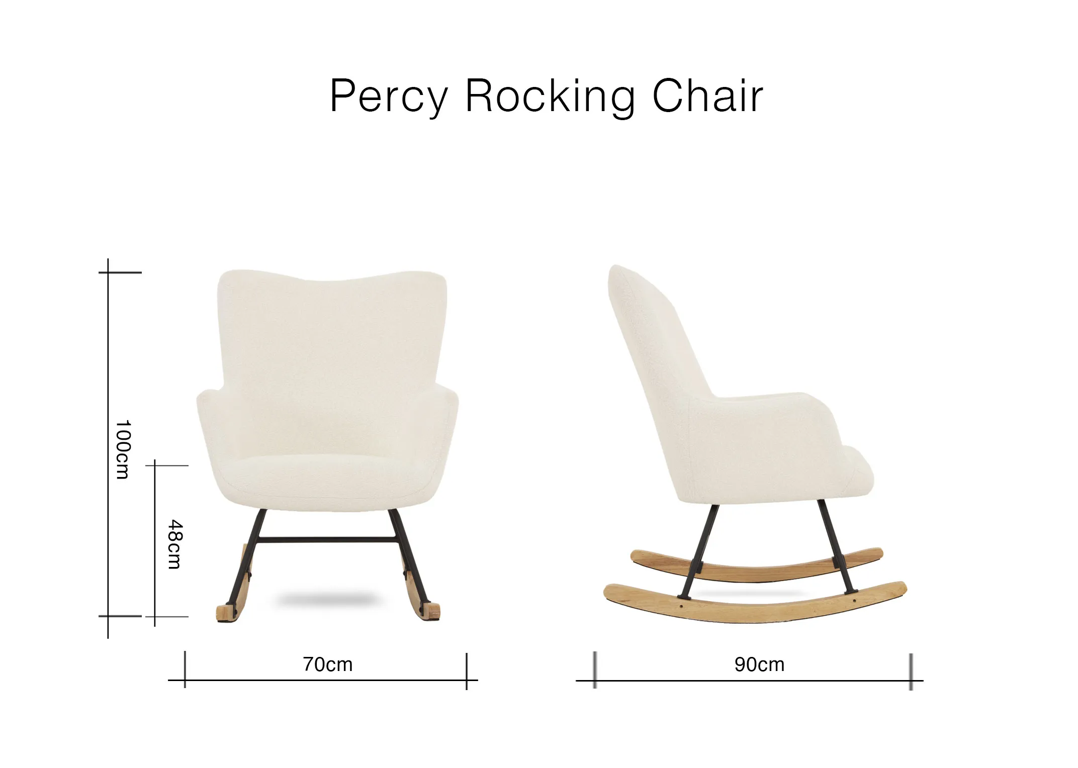 Off White Boucle Wooden Leg Rocking Chair - Percy