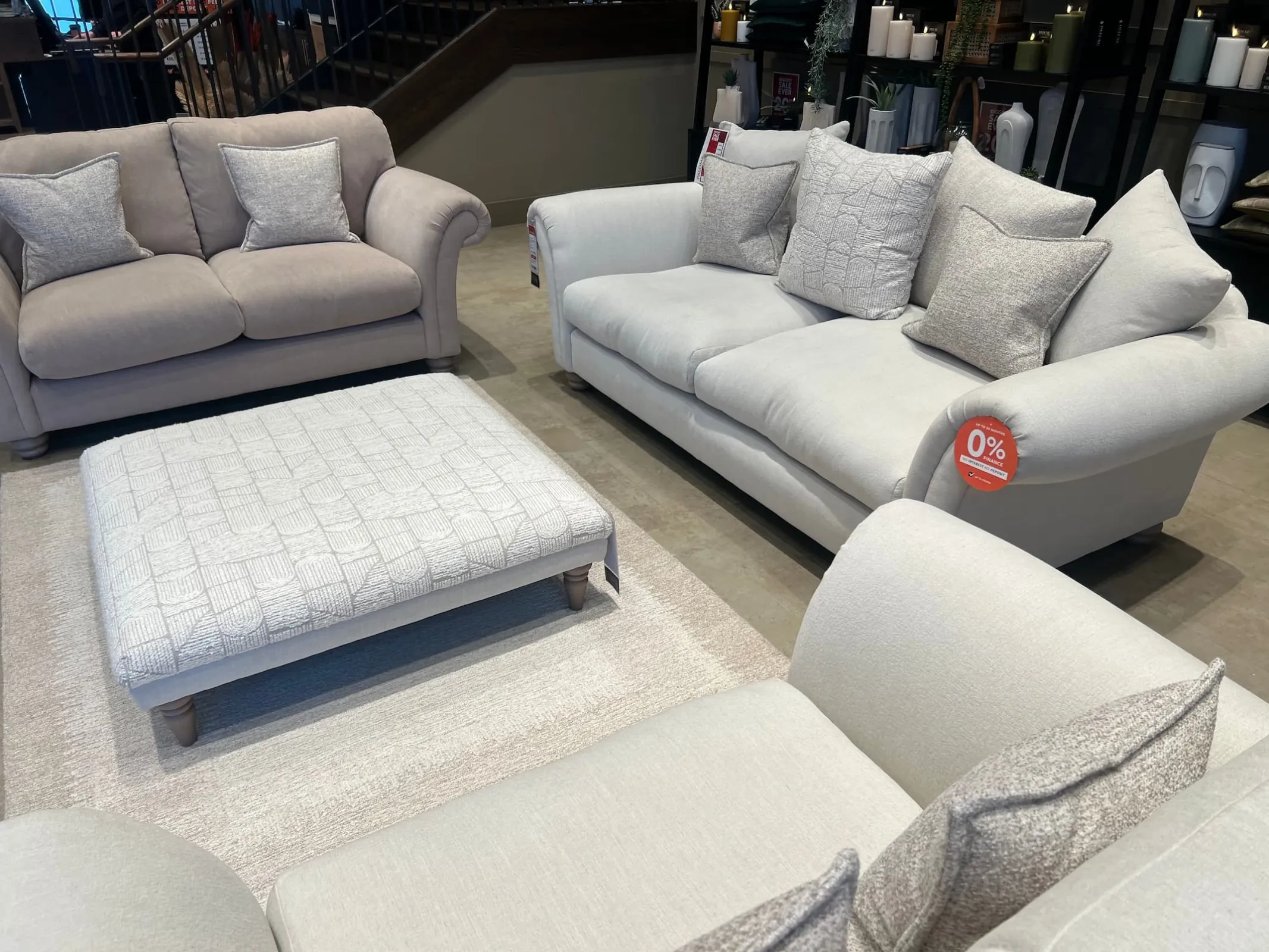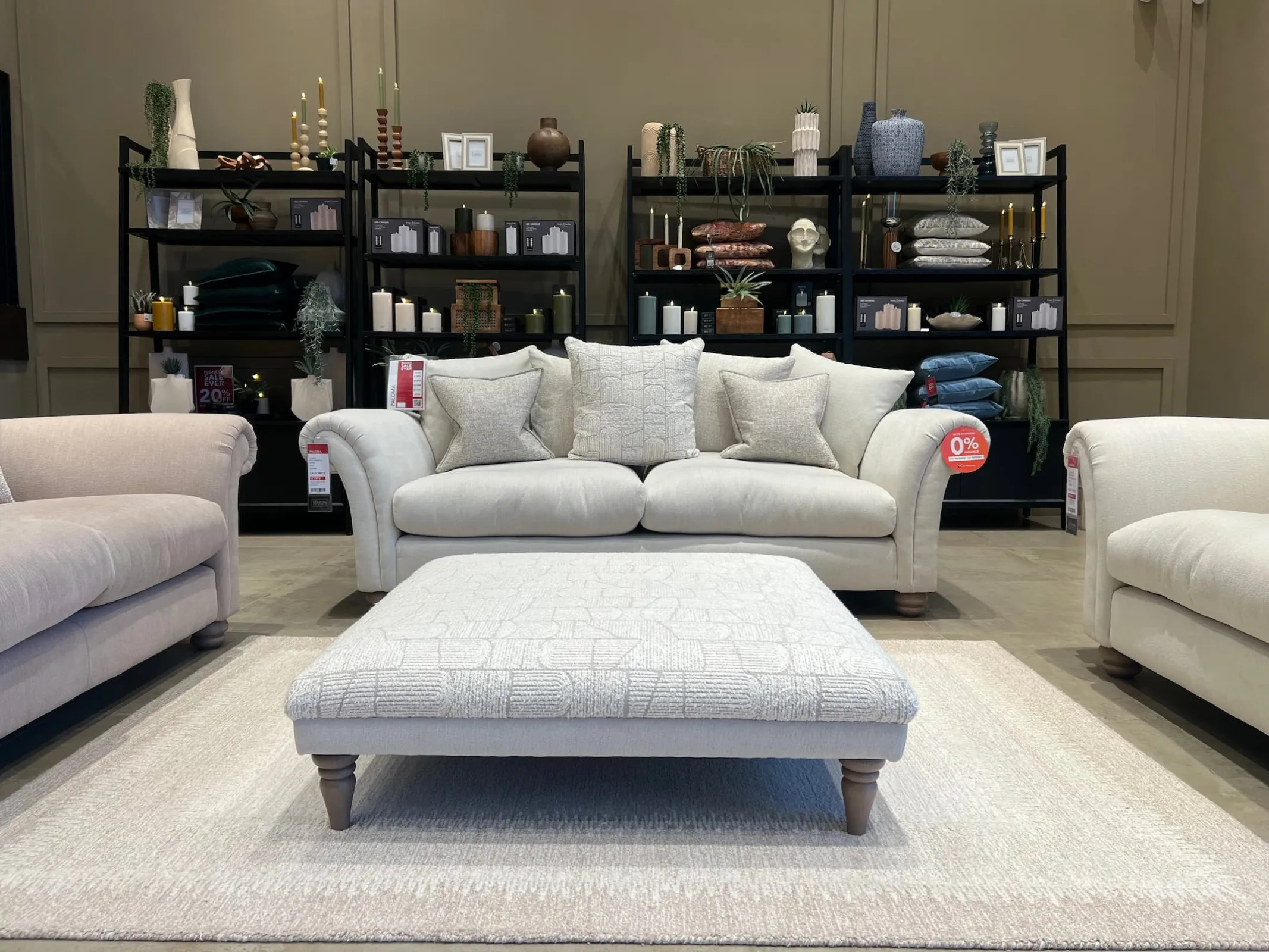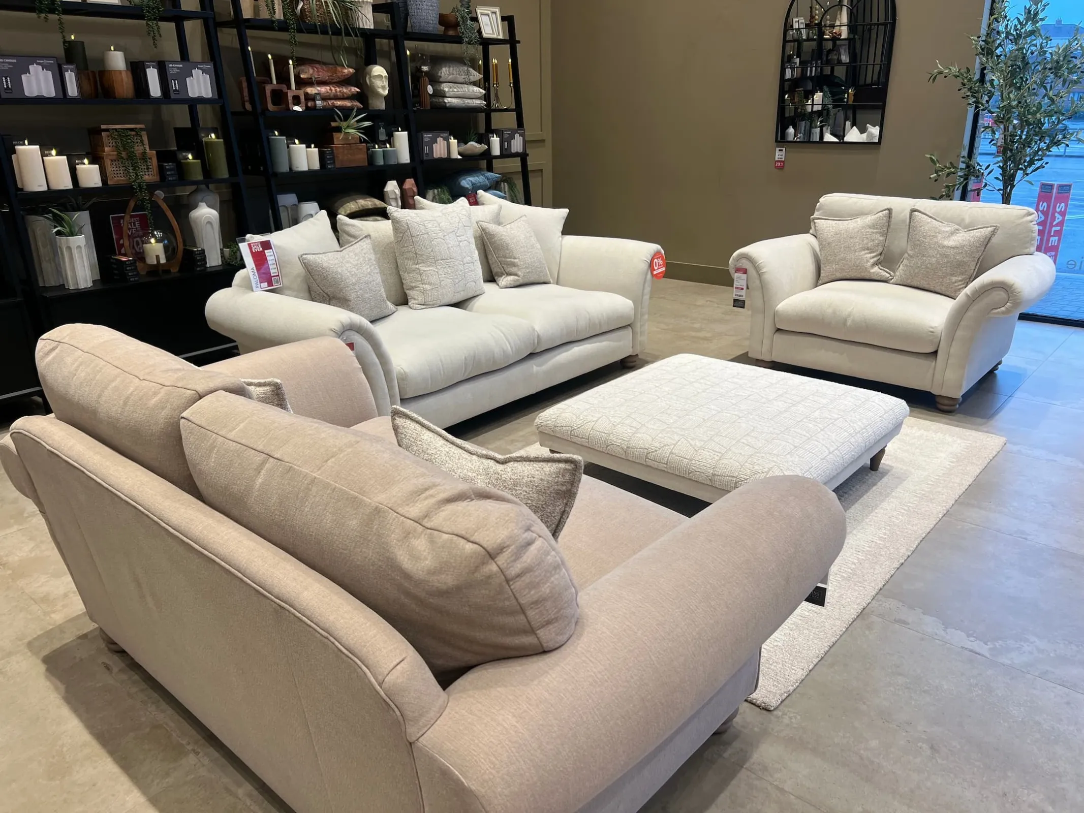 Paloma Large Pillowback Sofa, Medium Highback Sofa, Cuddler & Footstool (Cavan Floor Model)