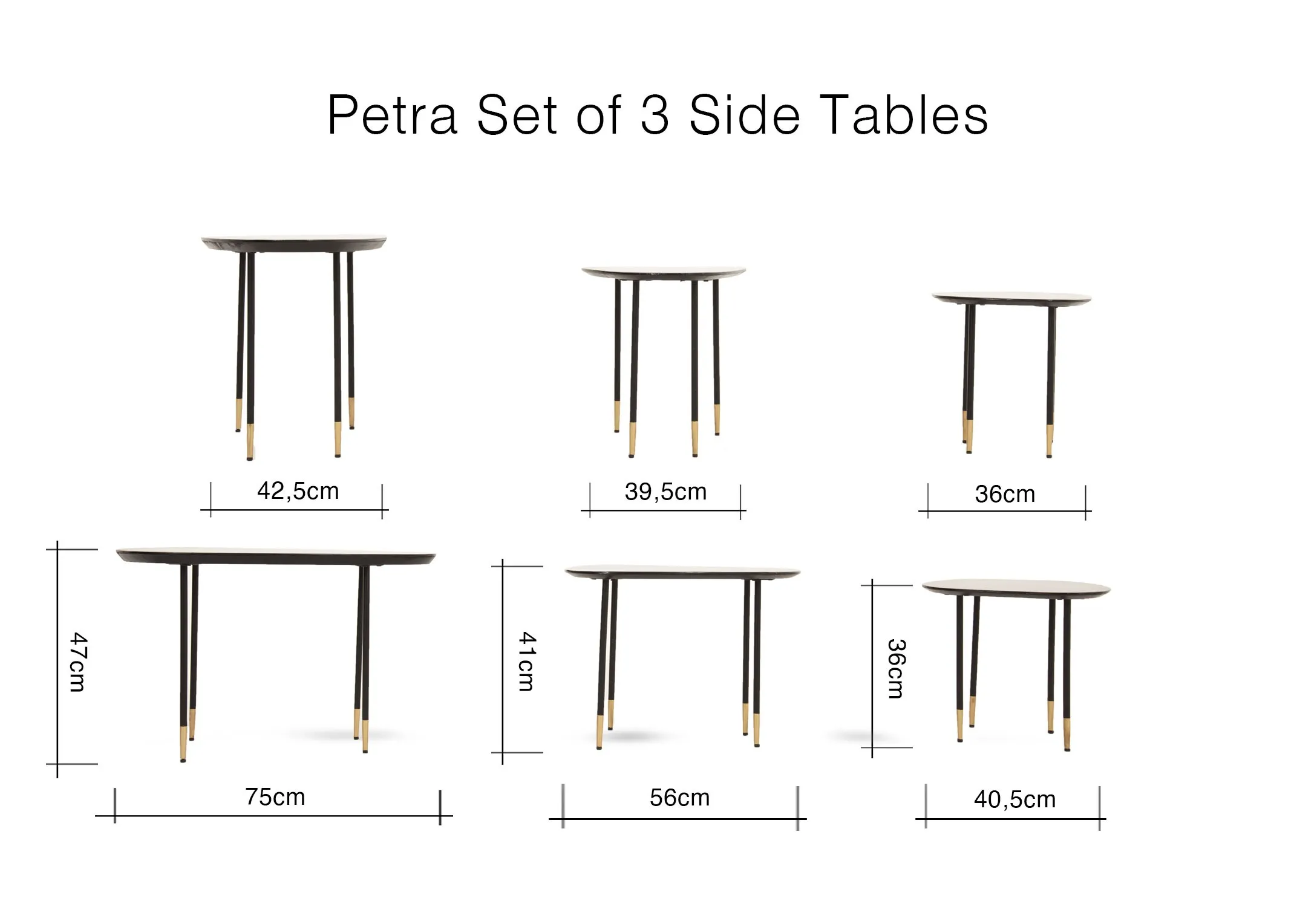Petra Black Nest of 3 Tables (Clonmel Floor Model)