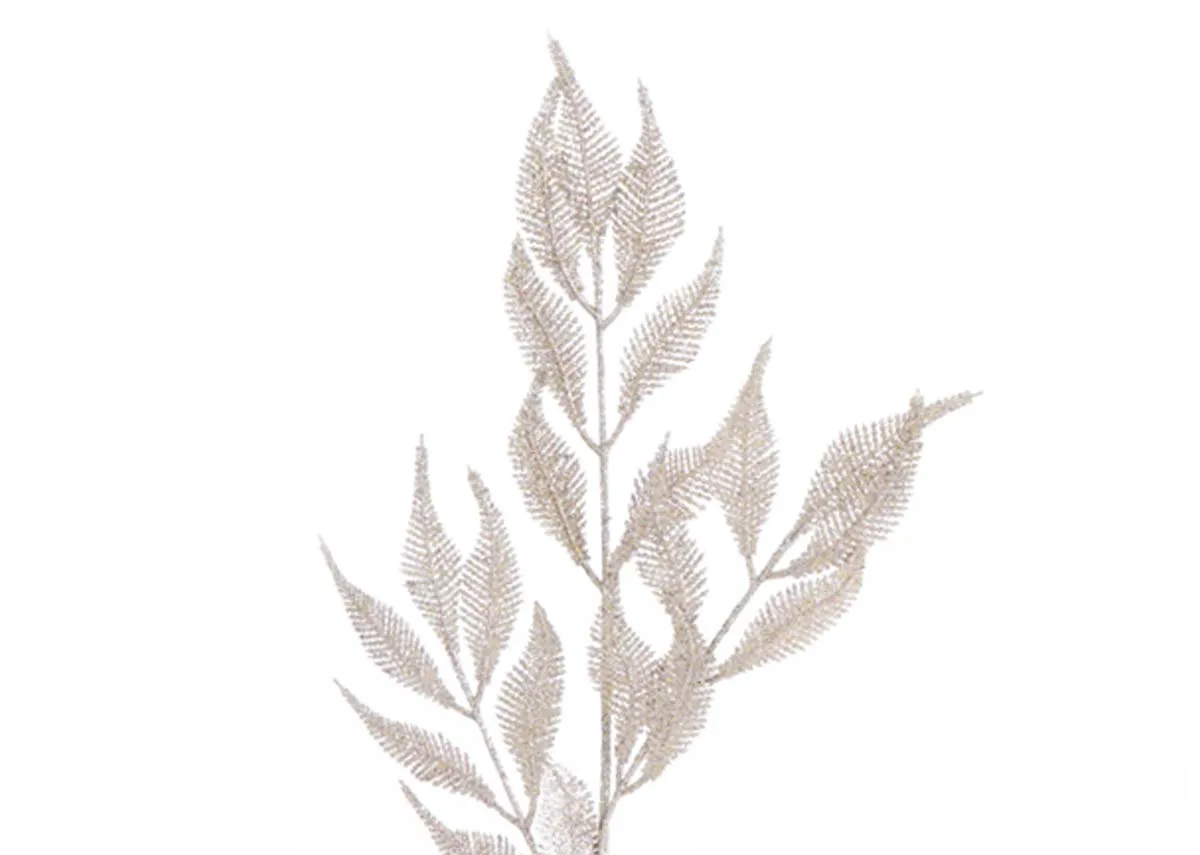 Add a touch of sparkling holiday magic to your home with this glittery pink leaf pick.