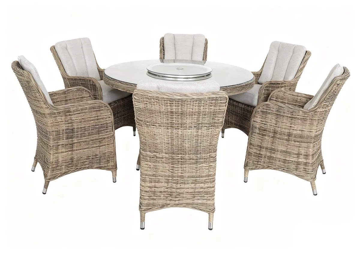 Round Table & 6 Chairs Garden Dining Set with Ice Bucket & Lazy Susan - Monterey