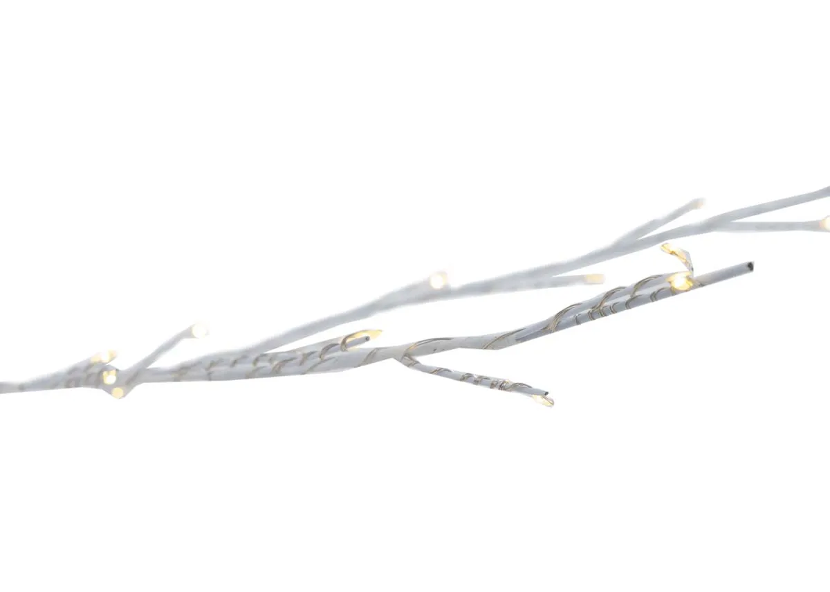 White-finished, branch-like Rudy LED Tree with 300 Warm White Lights, boasting a realistic, rounded tree slab base.