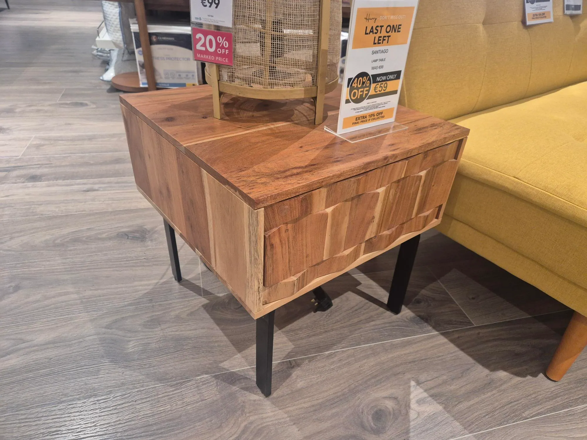 Santiago 1 Drawer Acacia Side Table (Castlebar Floor Model)