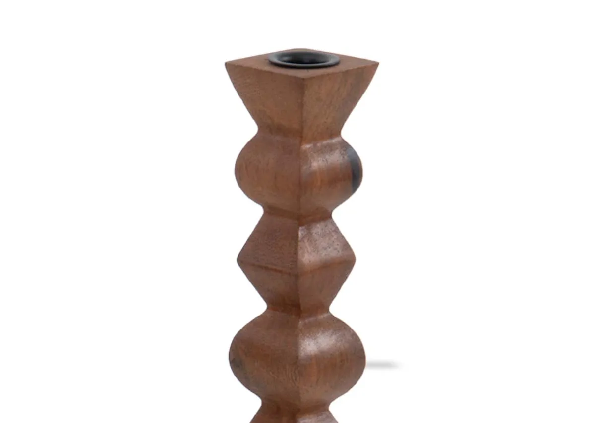 Illuminate your home with the distinctively sculpted Moonlight Set of 2 Wooden Candle Holders, adding warmth and unique style to any space.
