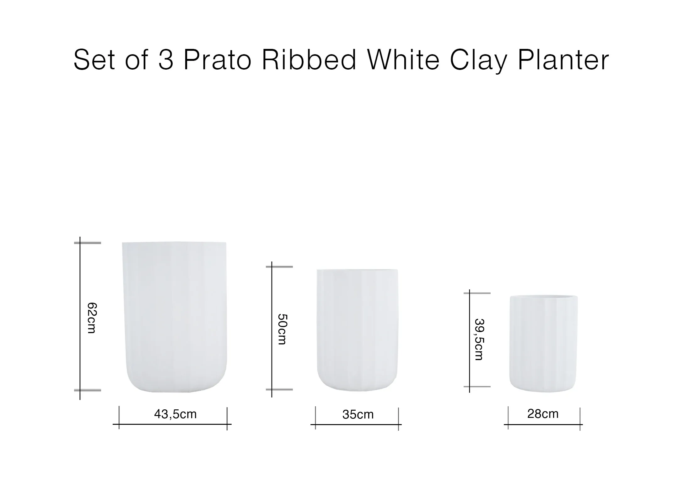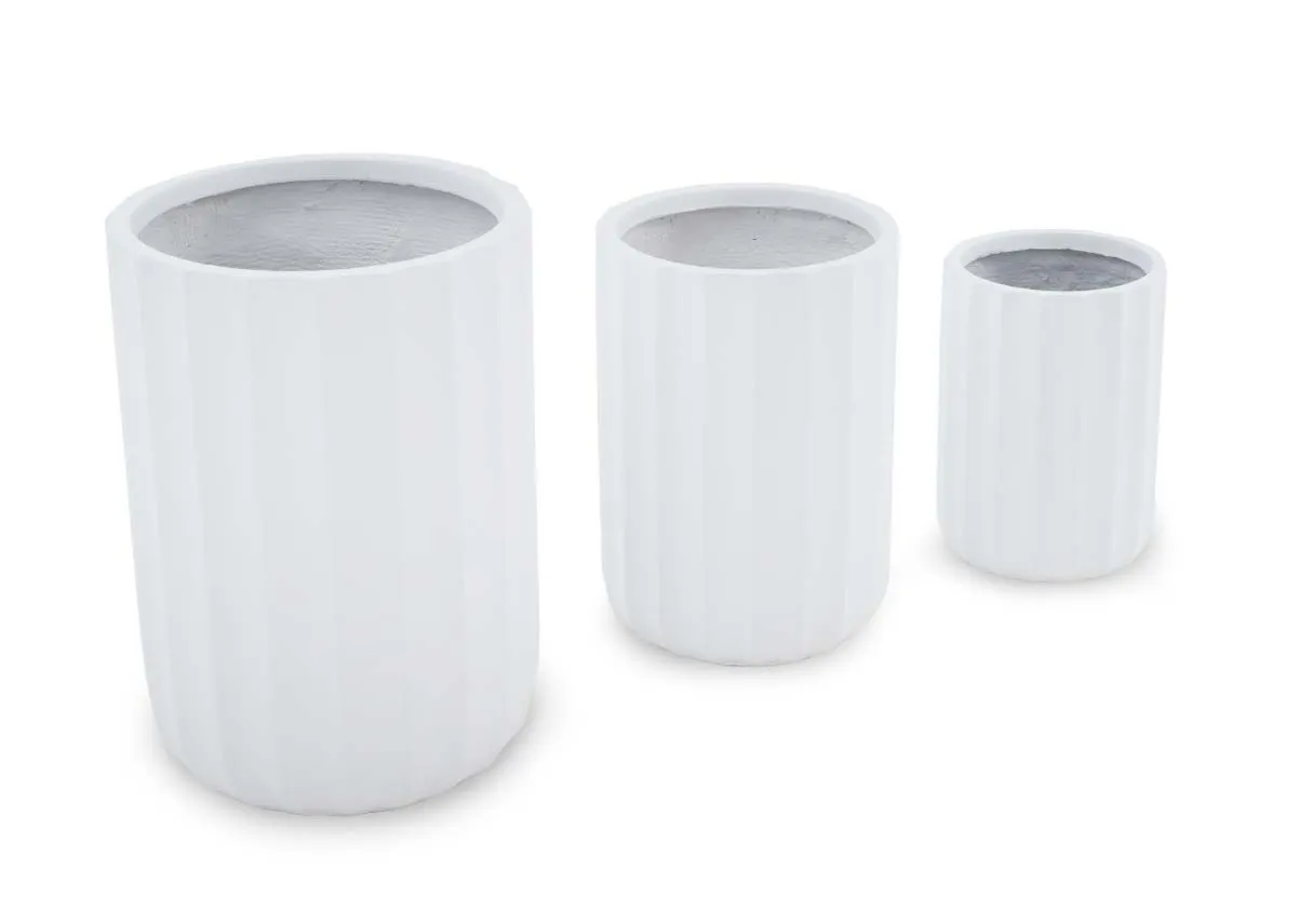 Set Of 3 White Ribbed Clay Planter- Prato