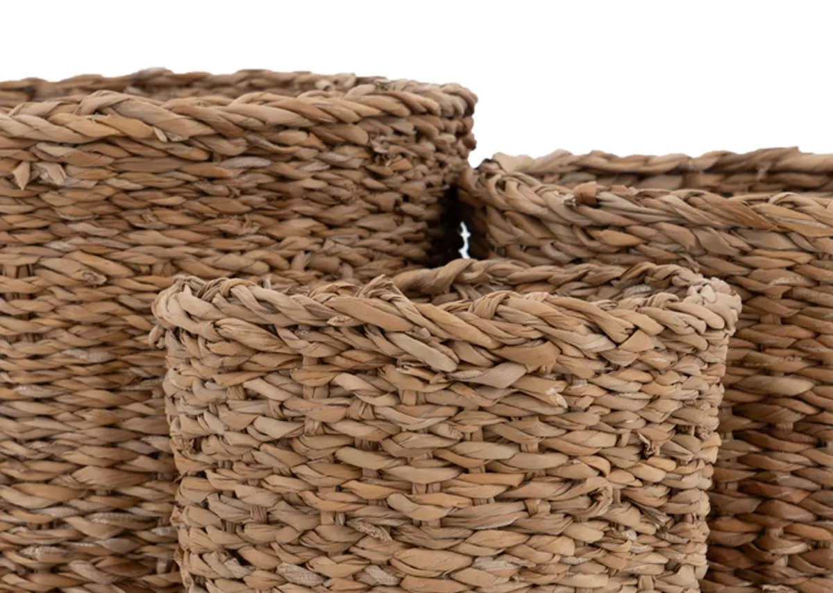 Elevate your home's organisation and aesthetic with the beautifully crafted Caspian Set of 3 Natural Cylinder Baskets.