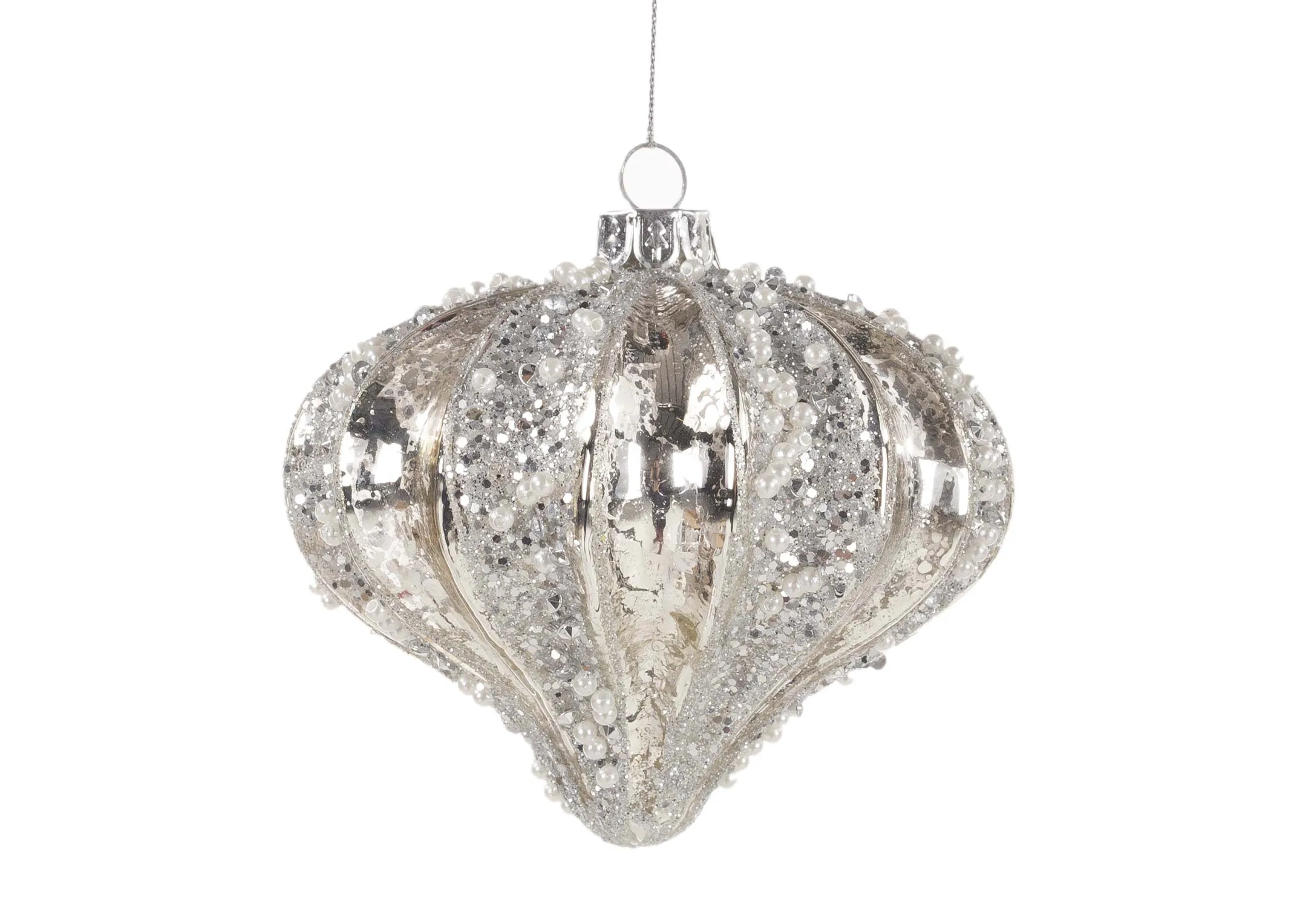 A glistening set of 4 gold sparkle onion bulb shaped baubles for your Christmas tree and displays for the festive season.
