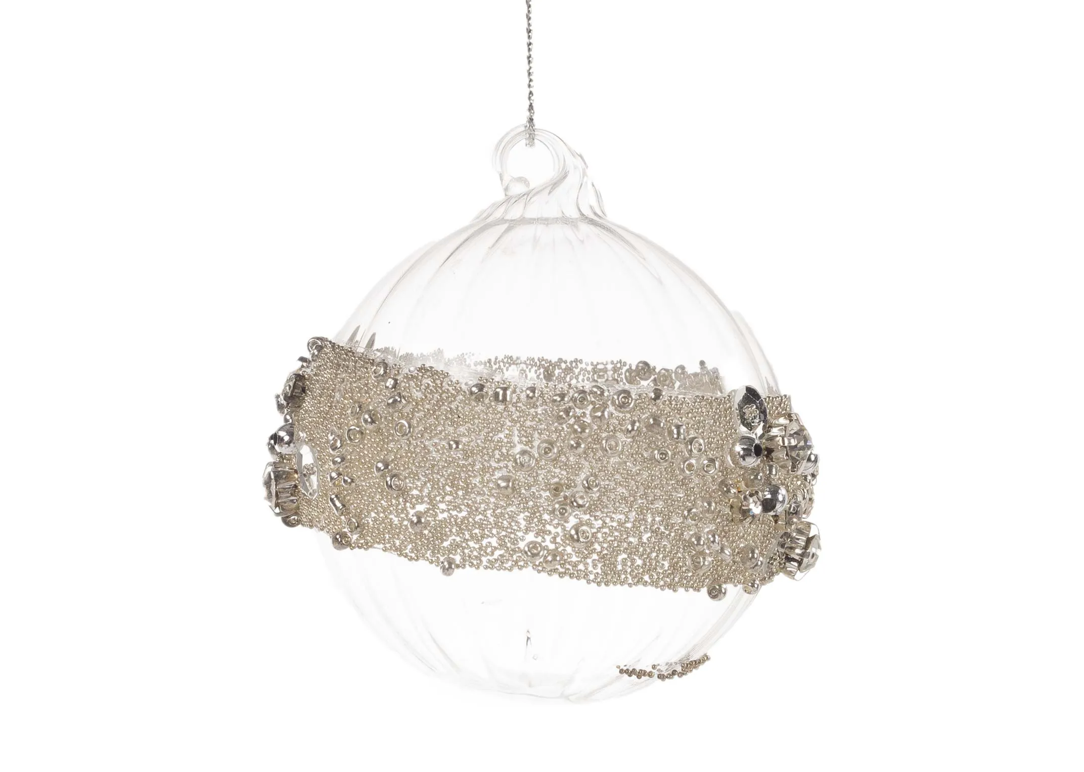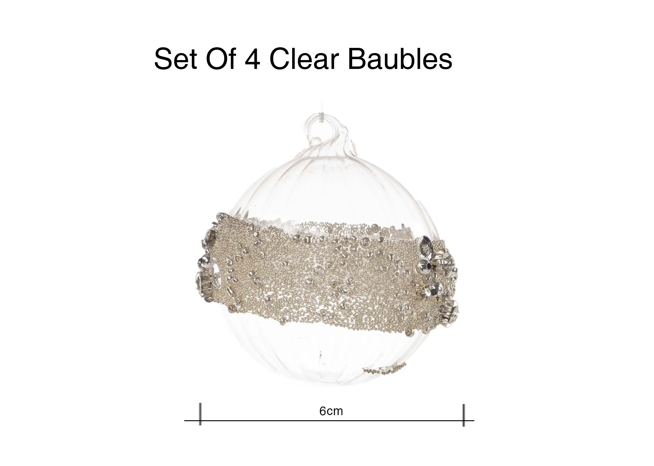 A set of 4 baubles, traditional and round with a silver diamante band, perfect for winter themed decor.