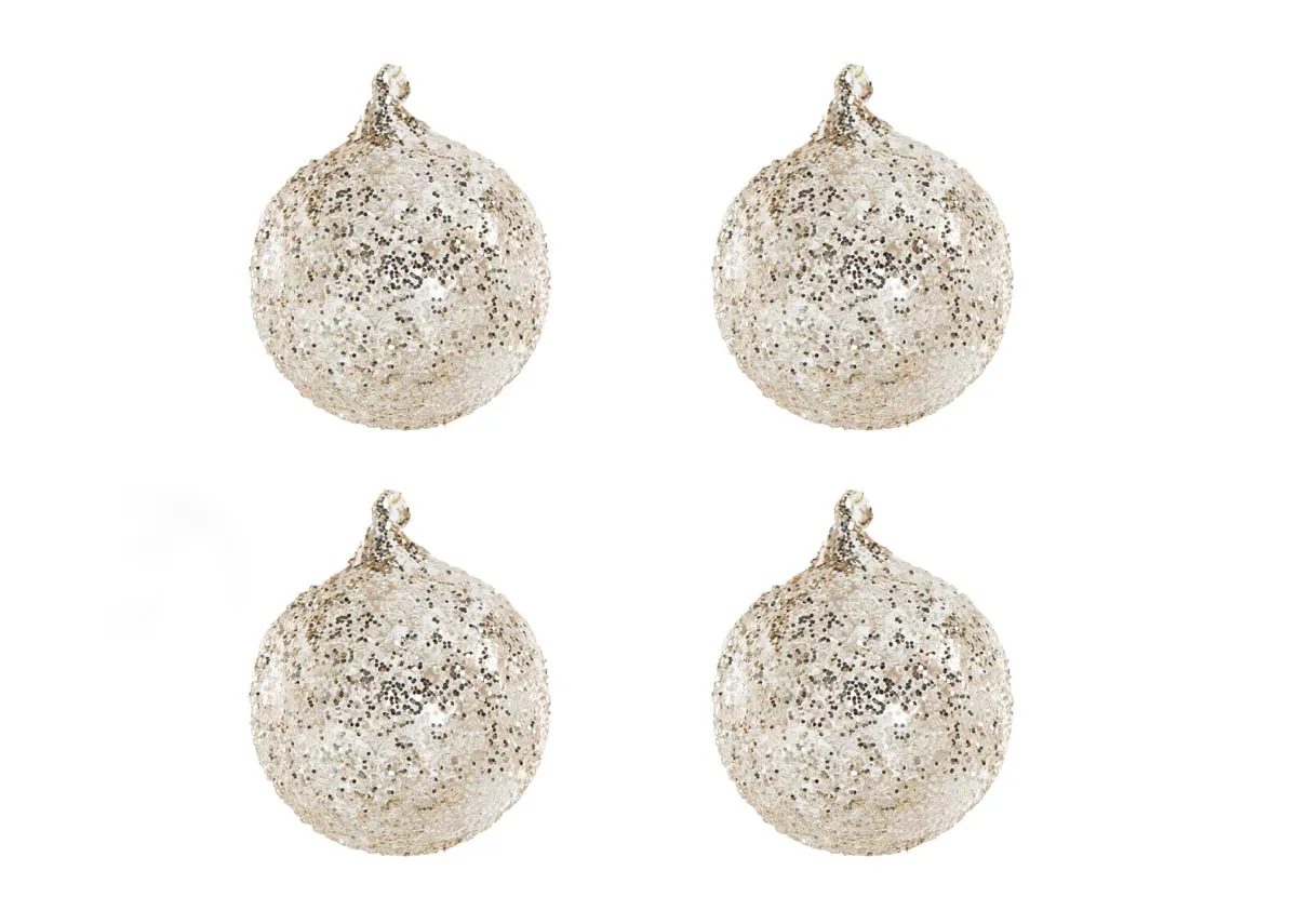 A glistening set of 4 gold and silver sparkle baubles for your Christmas tree and displays for the festive season.