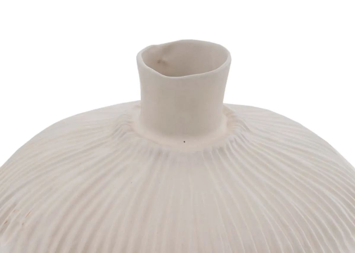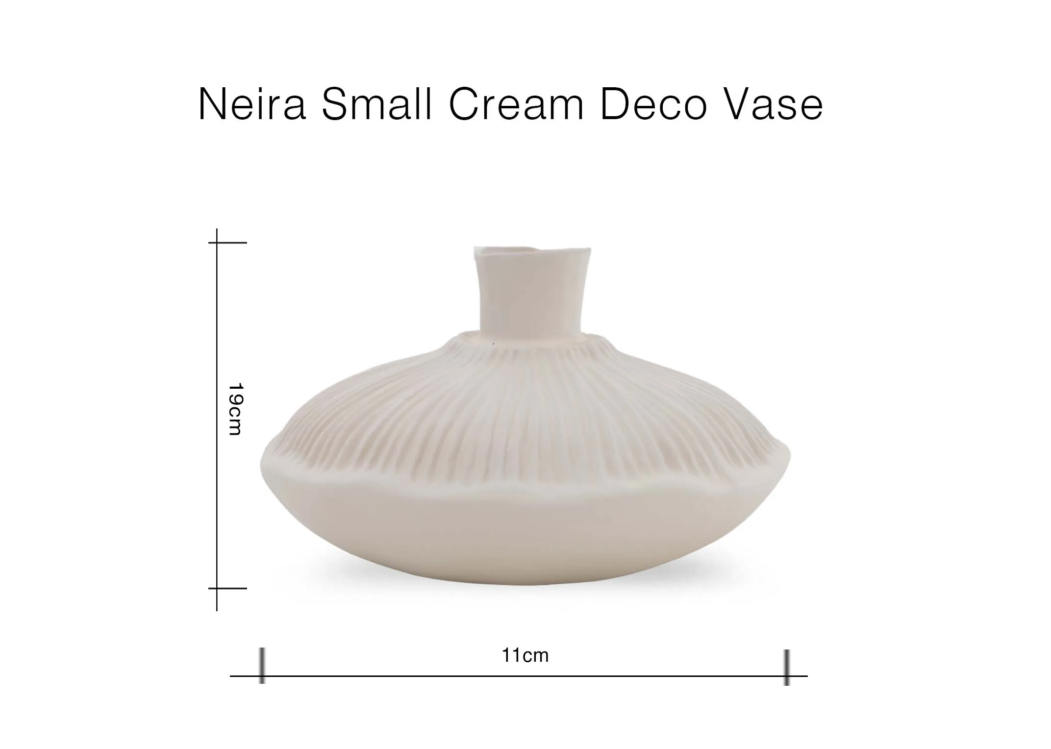 A hand crafted piece that likens an upturned mushroom, this Neira vase in simple cream is sure to be a feature of any shelf.
